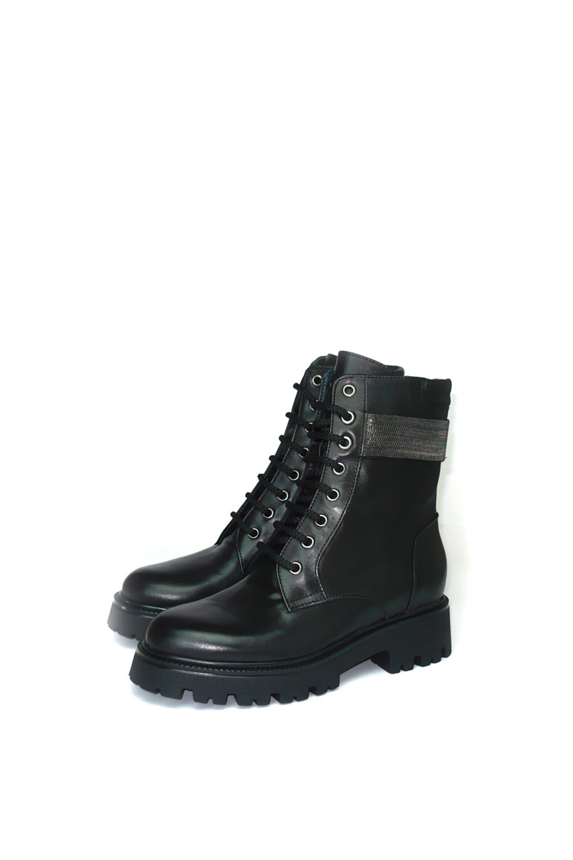 Anfibio in pelle nera con accessorio