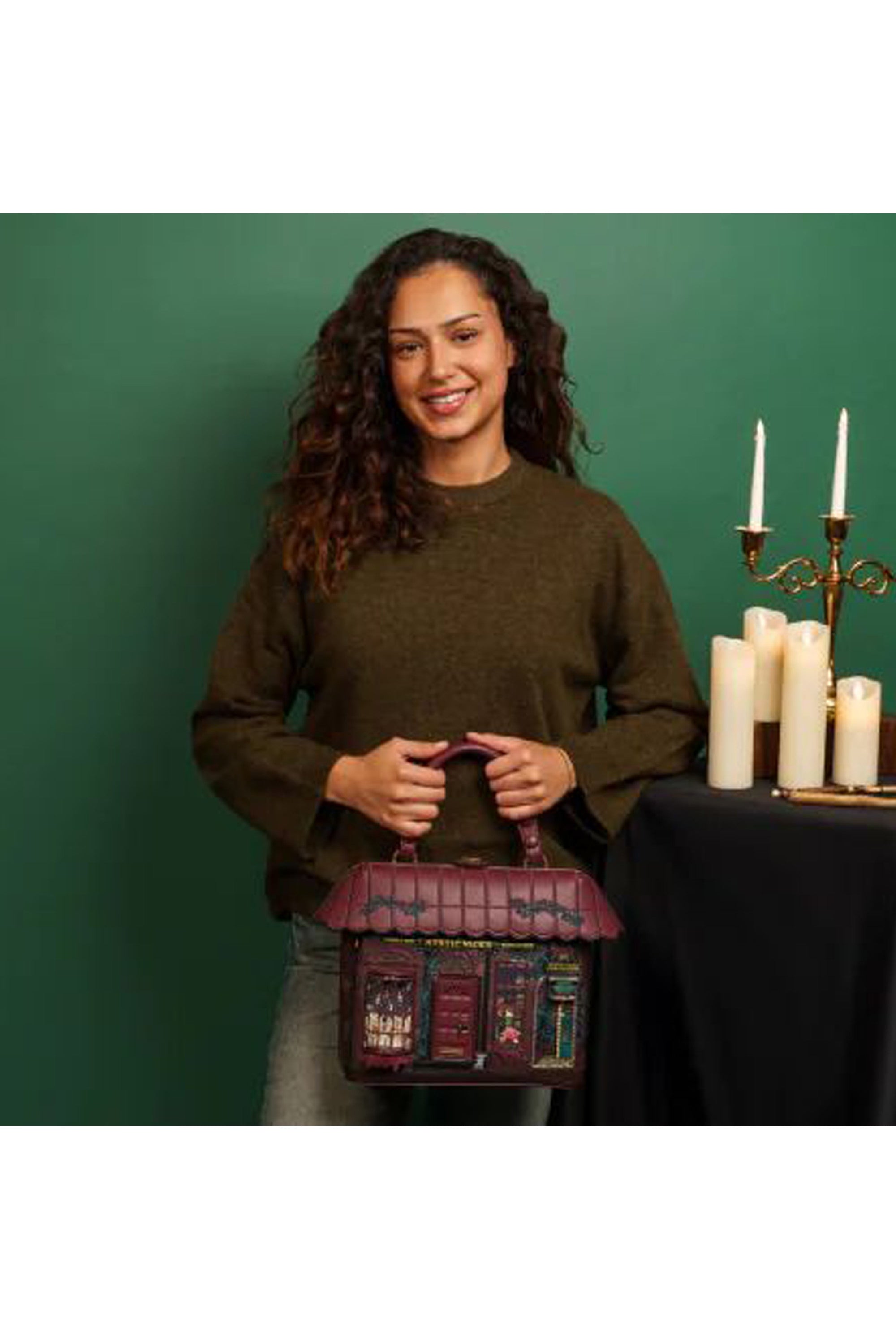 Scegli un look leggendario con un tocco incantevole! La Borsa a Mano Mystic Wicks Candle and Wandmakers è realizzata in pelle vegana e presenta un manico e un cinturino staccabili per un utilizzo versatile: puoi usarla come borsa a mano, a spalla o a tracolla. Con un interno spazioso e tasche per tenere tutto organizzato, questa borsa risplende con la sua esclusiva grafica: candele levitanti, una vetrata in vinile trasparente e una porta d’ingresso smussata, il tutto completato da splendidi dettagli in rame. Questa è la magia dell'autunno/inverno al suo meglio!