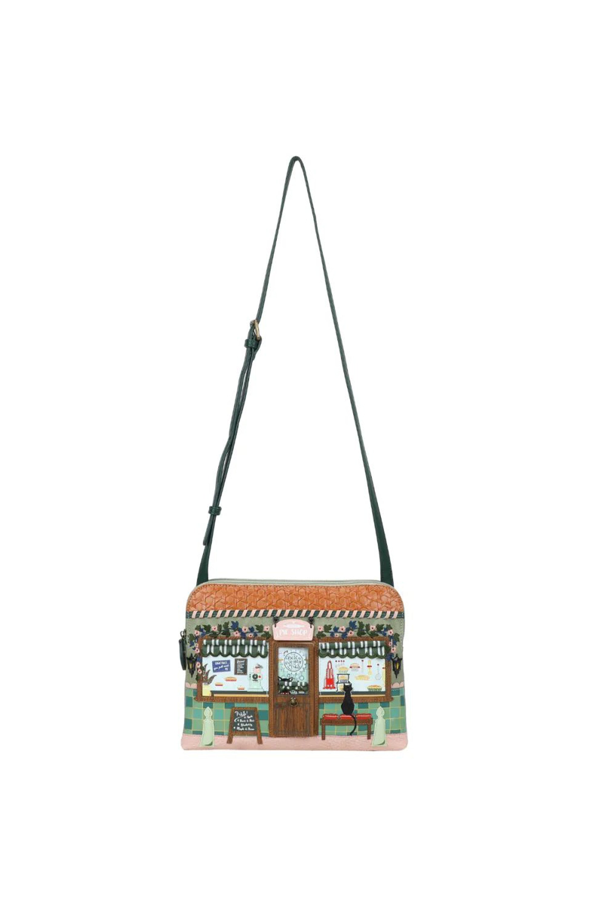 La tua borsa a tracolla preferita è tornata! La Borsa Bella Vendula Pie Shop è dotata di due scomparti con zip, una tracolla regolabile e un design ispirato a una pasticceria che ti farà venire l’acquolina in bocca. Realizzata in pelle vegana, ha deliziosi dettagli stampati e applicati, come tende in tessuto, pareti piastrellate e torte irresistibili. Che tu sia in giro per delle commissioni o che ti goda una passeggiata autunnale, questo allegro accessorio renderà sicuramente la tua giornata, e il tuo look, più luminosi.