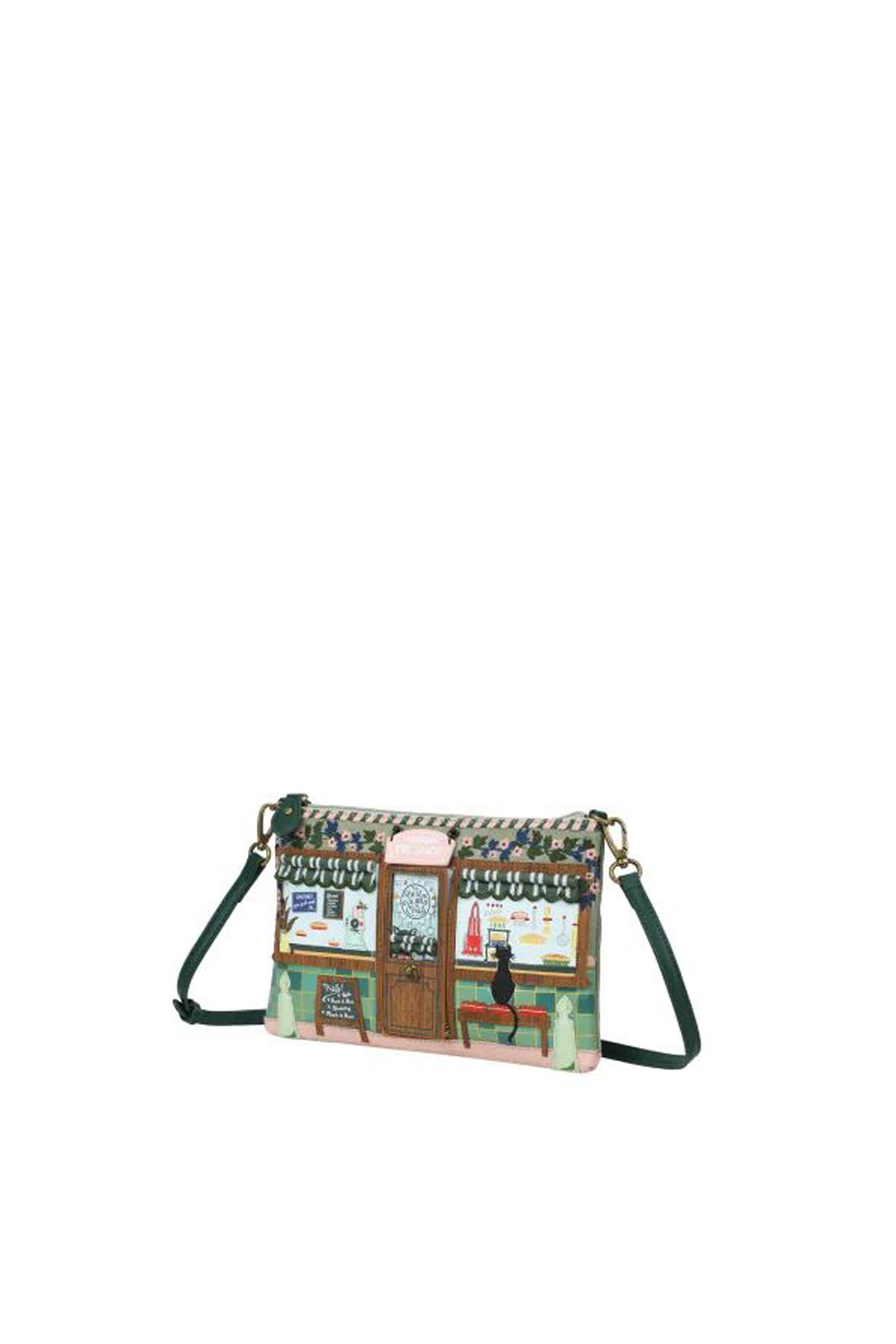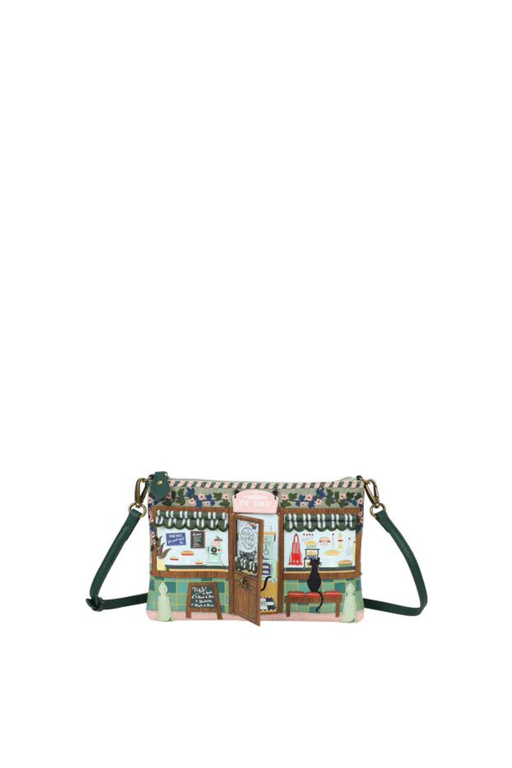 Chi avrebbe mai pensato che una forma classica potesse sembrare così attuale? La Borsa Kate Vendula Pie Shop è tanto versatile quanto deliziosa. Con un interno spazioso e varie tasche, si trasforma in pochette, borsa a spalla, a tracolla o beauty case, basta agganciare o sganciare la tracolla. Realizzata in pelle vegana e ricoperta da vivaci dettagli ispirati a una pasticceria, questa borsa farà colpo ovunque. Sofisticata, divertente e assolutamente deliziosa: ti chiederai come hai fatto a vivere senza.