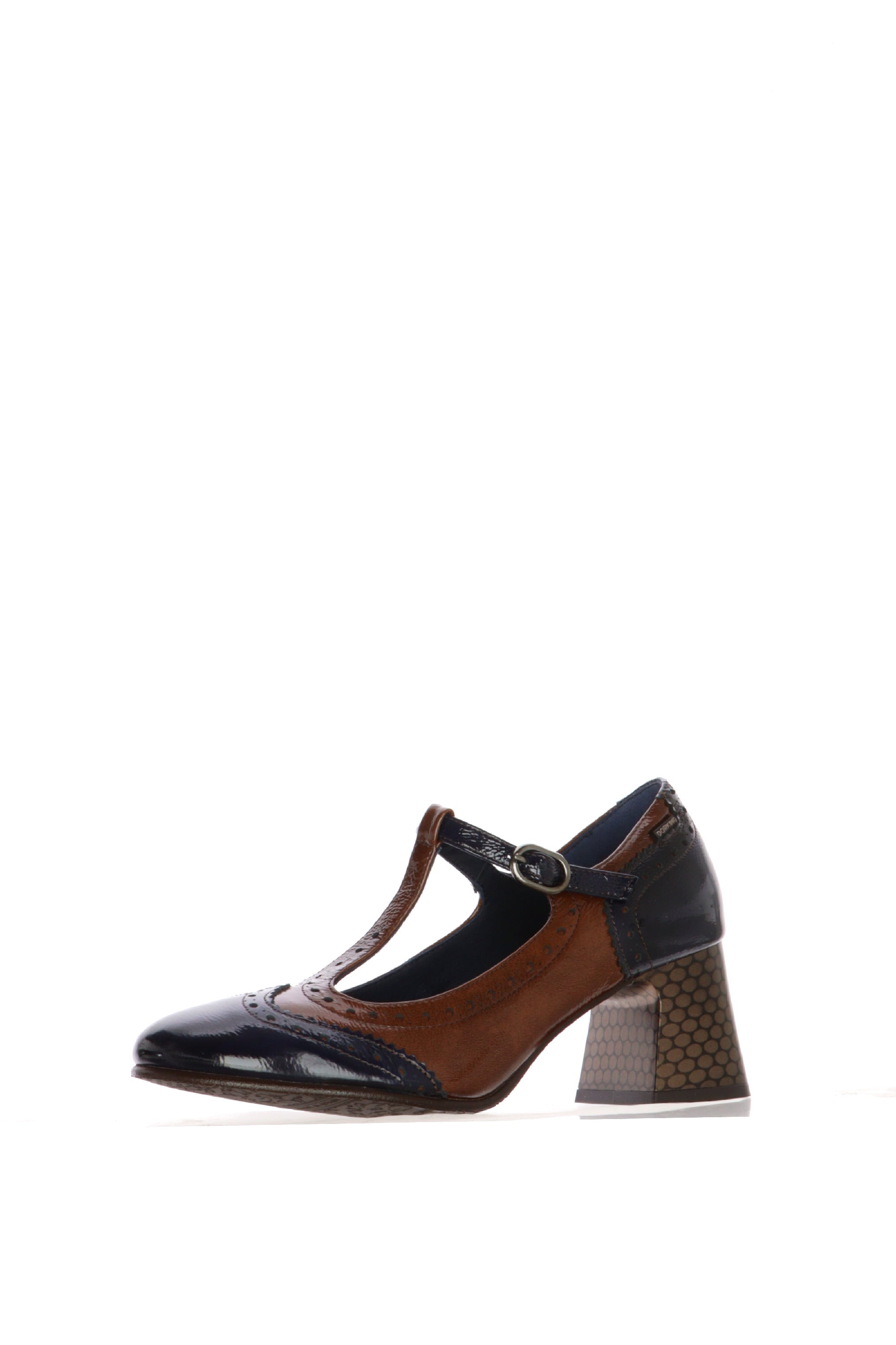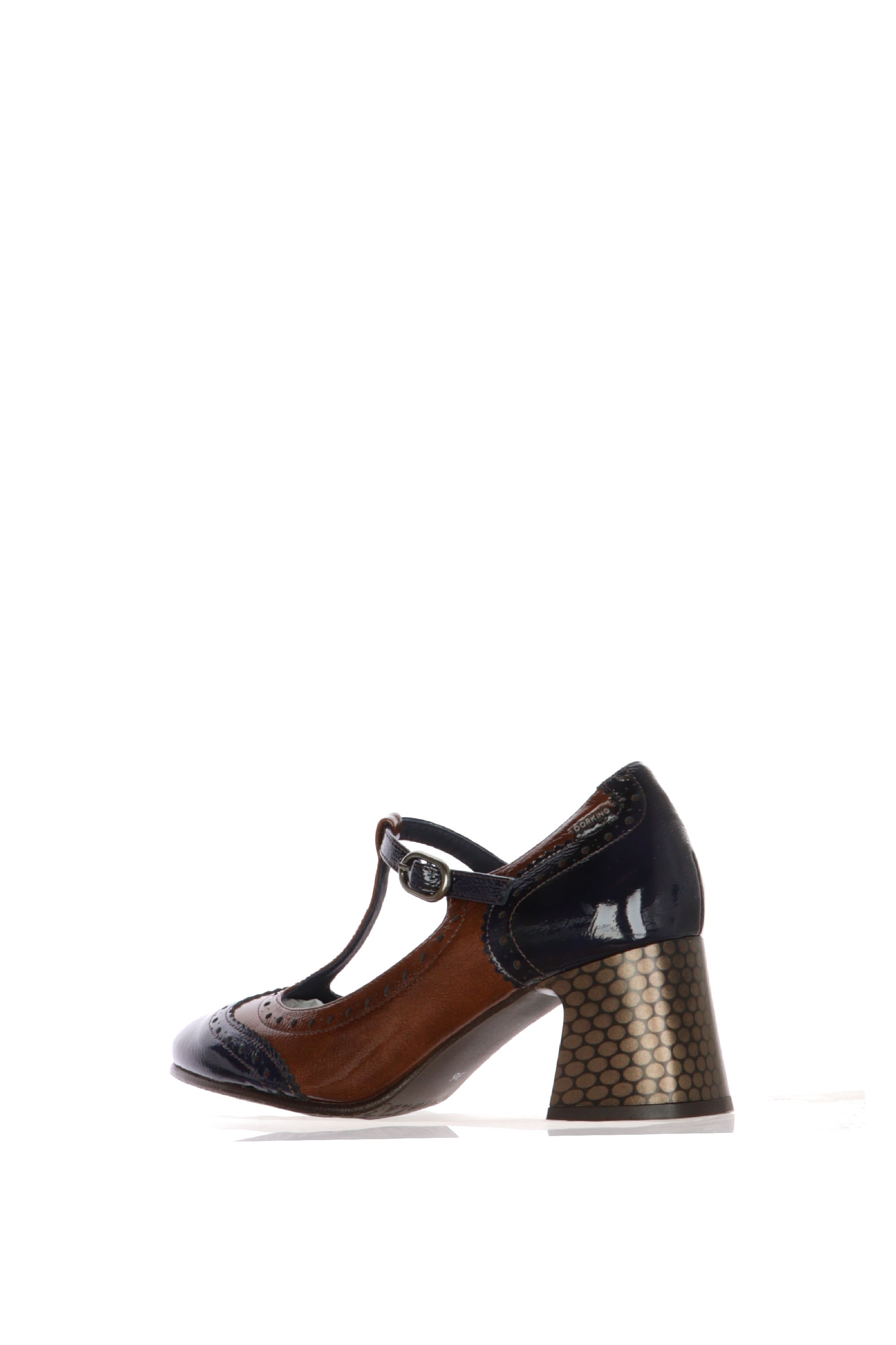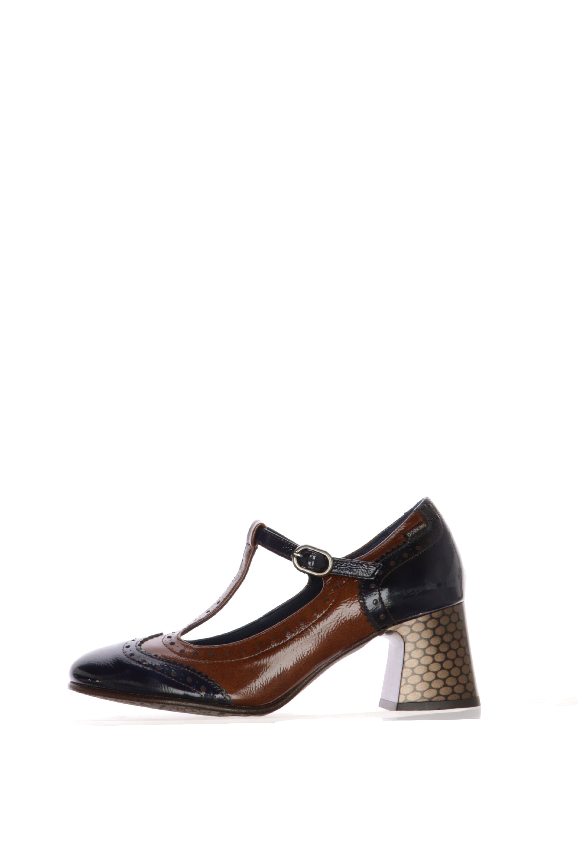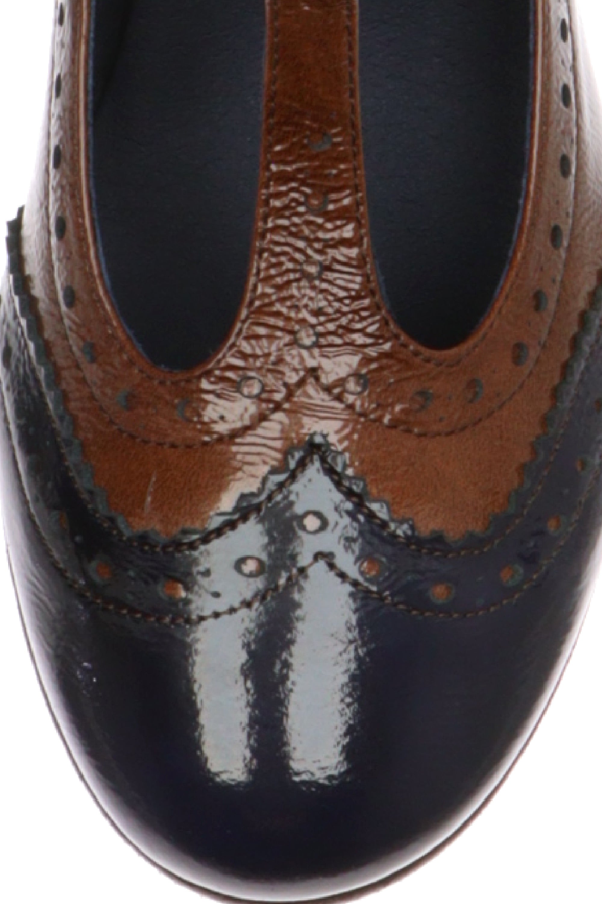 Decolletè francesina cuoio e blu con tacco Fluchos