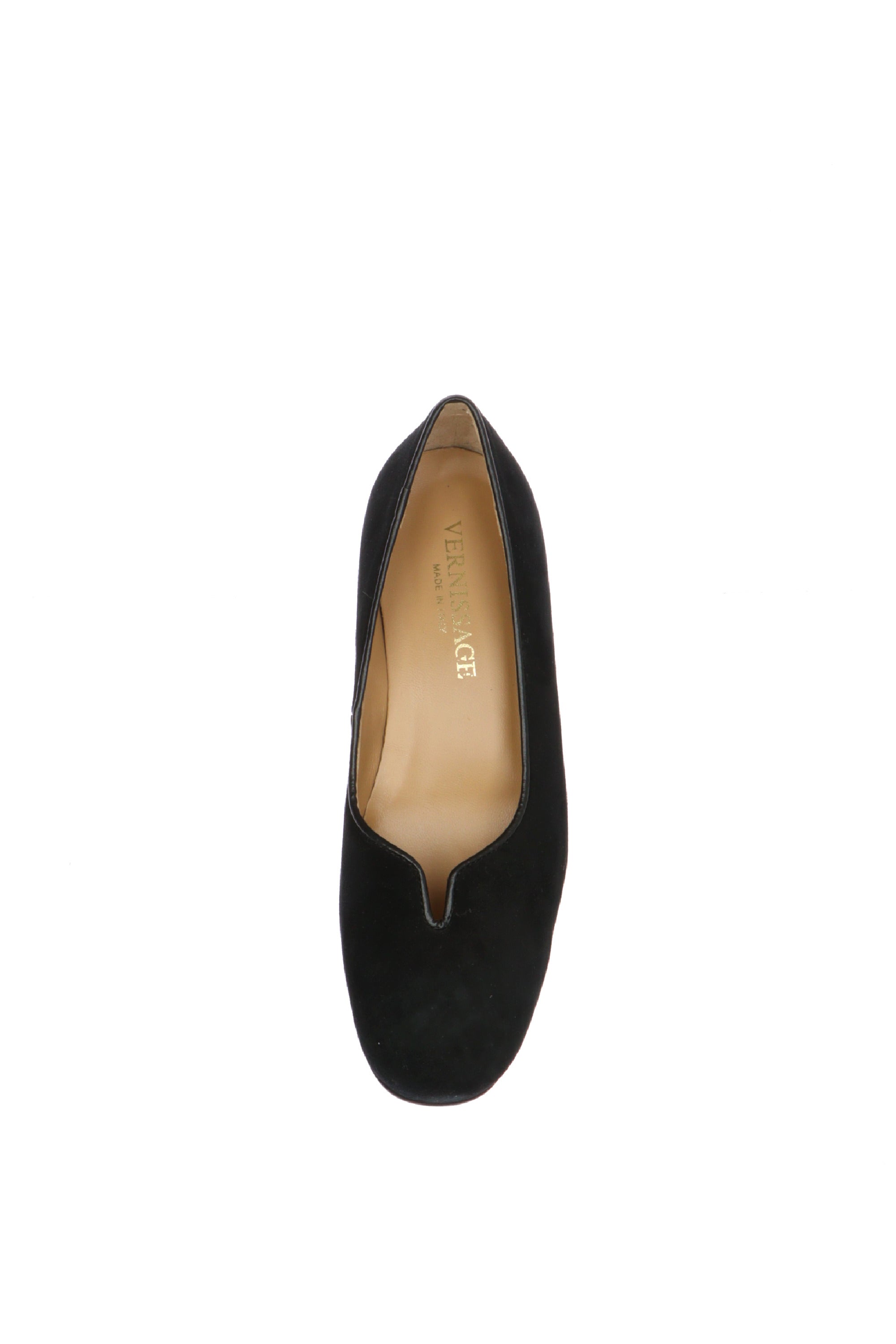 Eleganza nel Design: Realizzate in morbido camoscio nero, queste scarpe presentano una scollatura a V che slancia la figura e un design pulito e sofisticato.