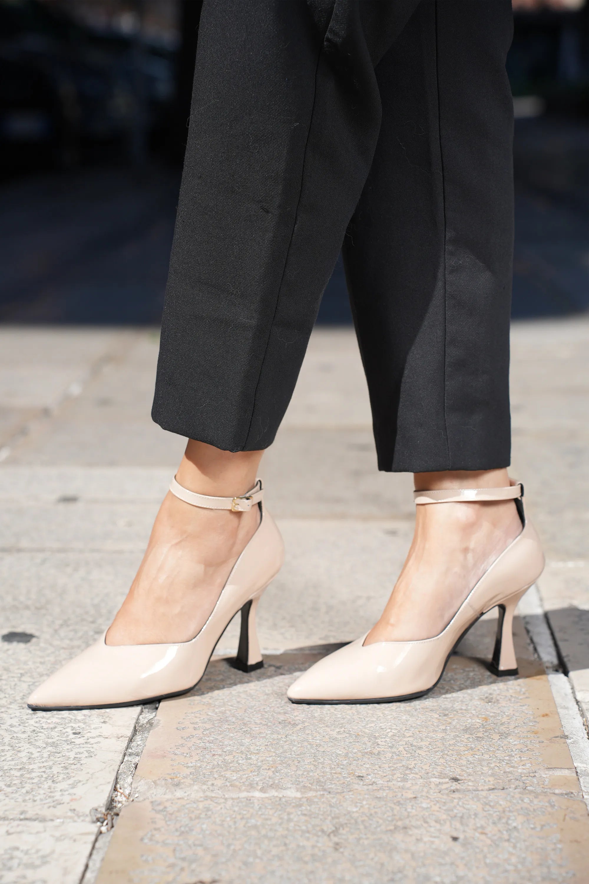 Decolletè in vernice con braccialino nude e nero Melluso.