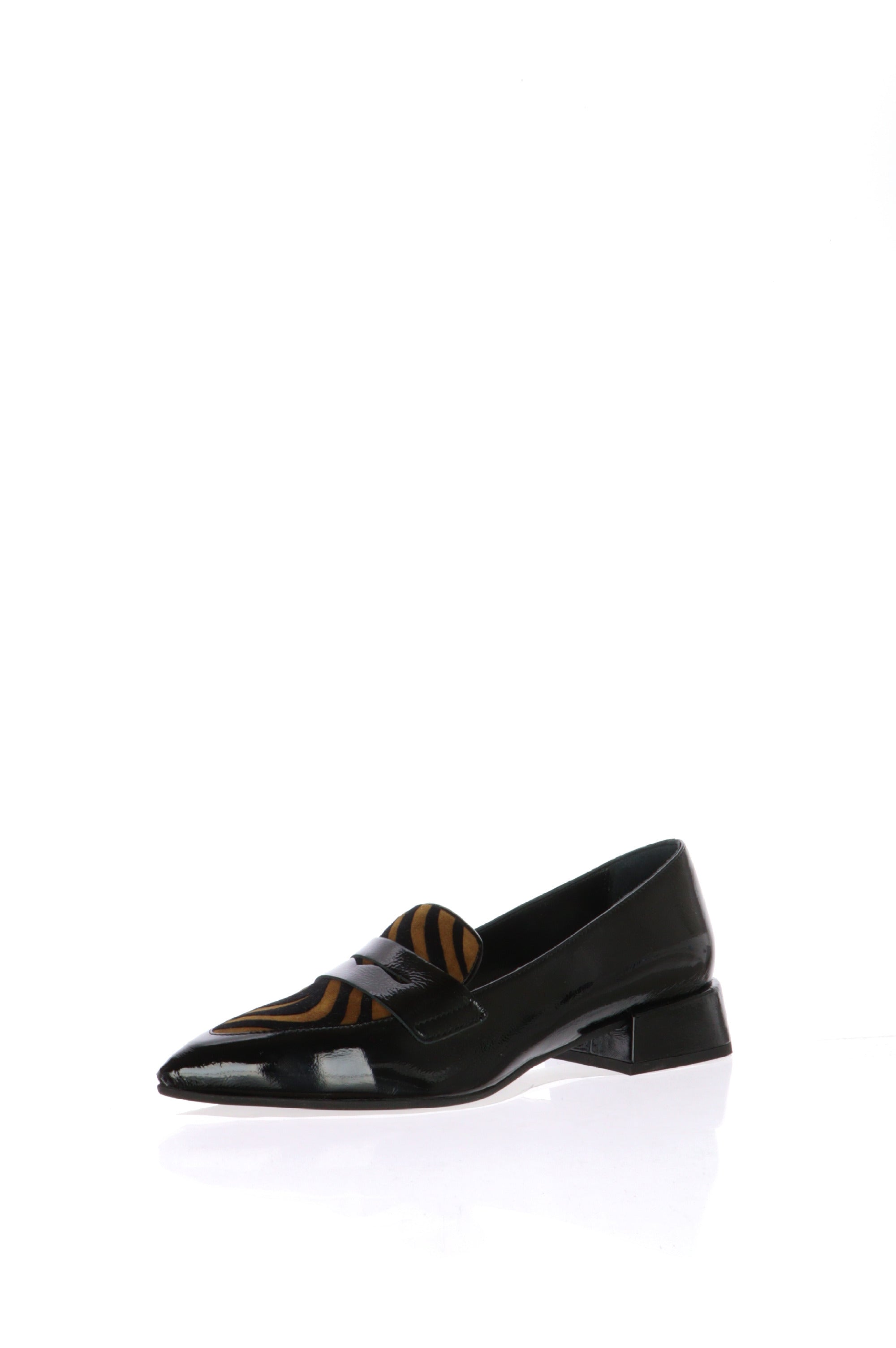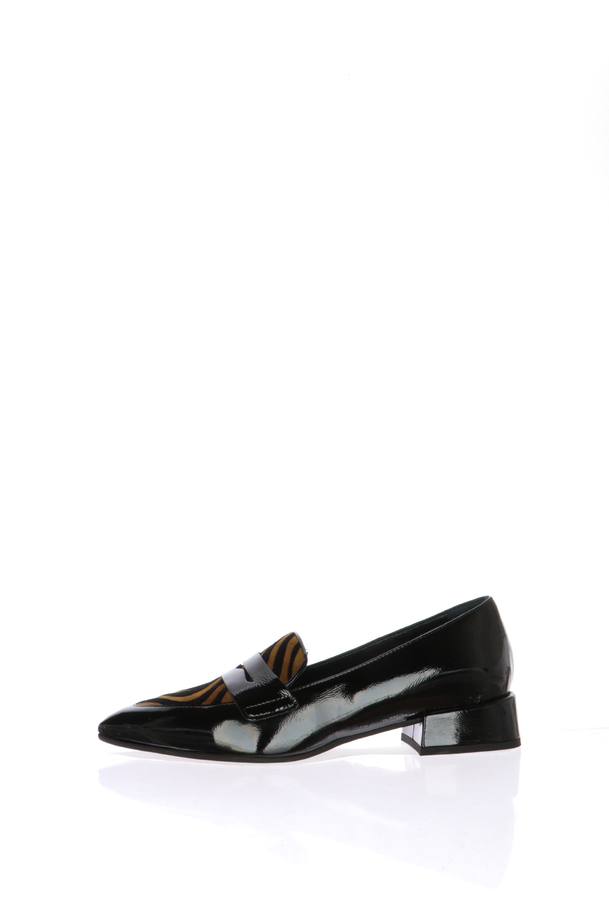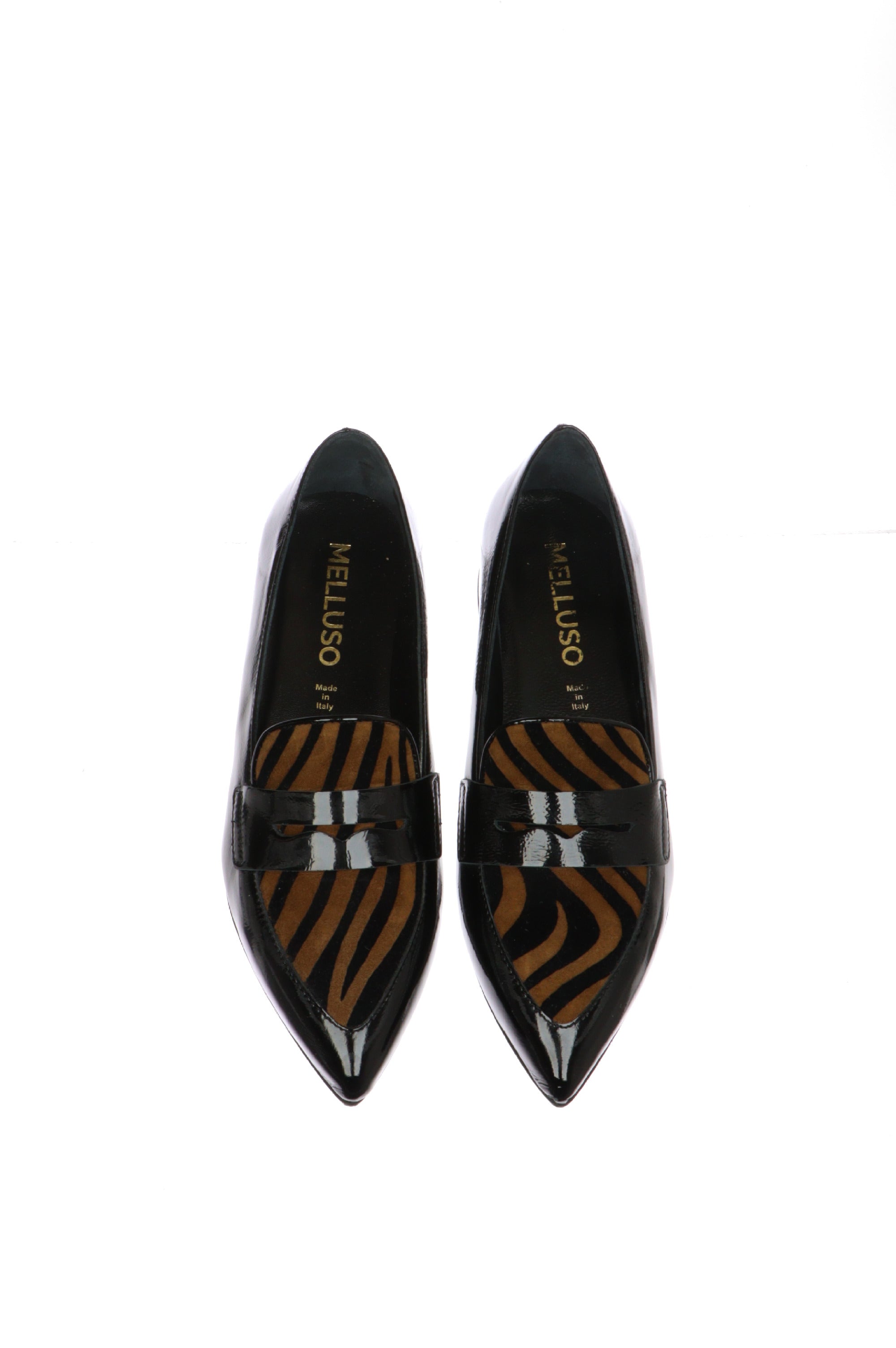 Decolletè stile mocassino in vero pelle nero, semplice e raffinato, con patta effetto zebrato. Avvolgente e slanciato, con tacco largo, comodo e da abbinare per diverse occasioni d'uso. Disponibile nei numeri piccoli e grandi donna dal 33 e 34 al 42,43,44. Melluso, qualità artigianale made in Italy