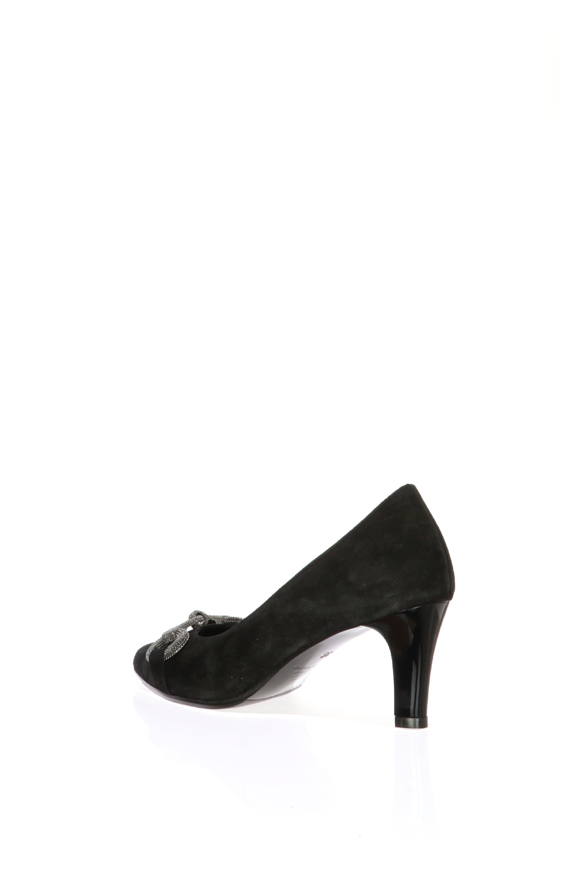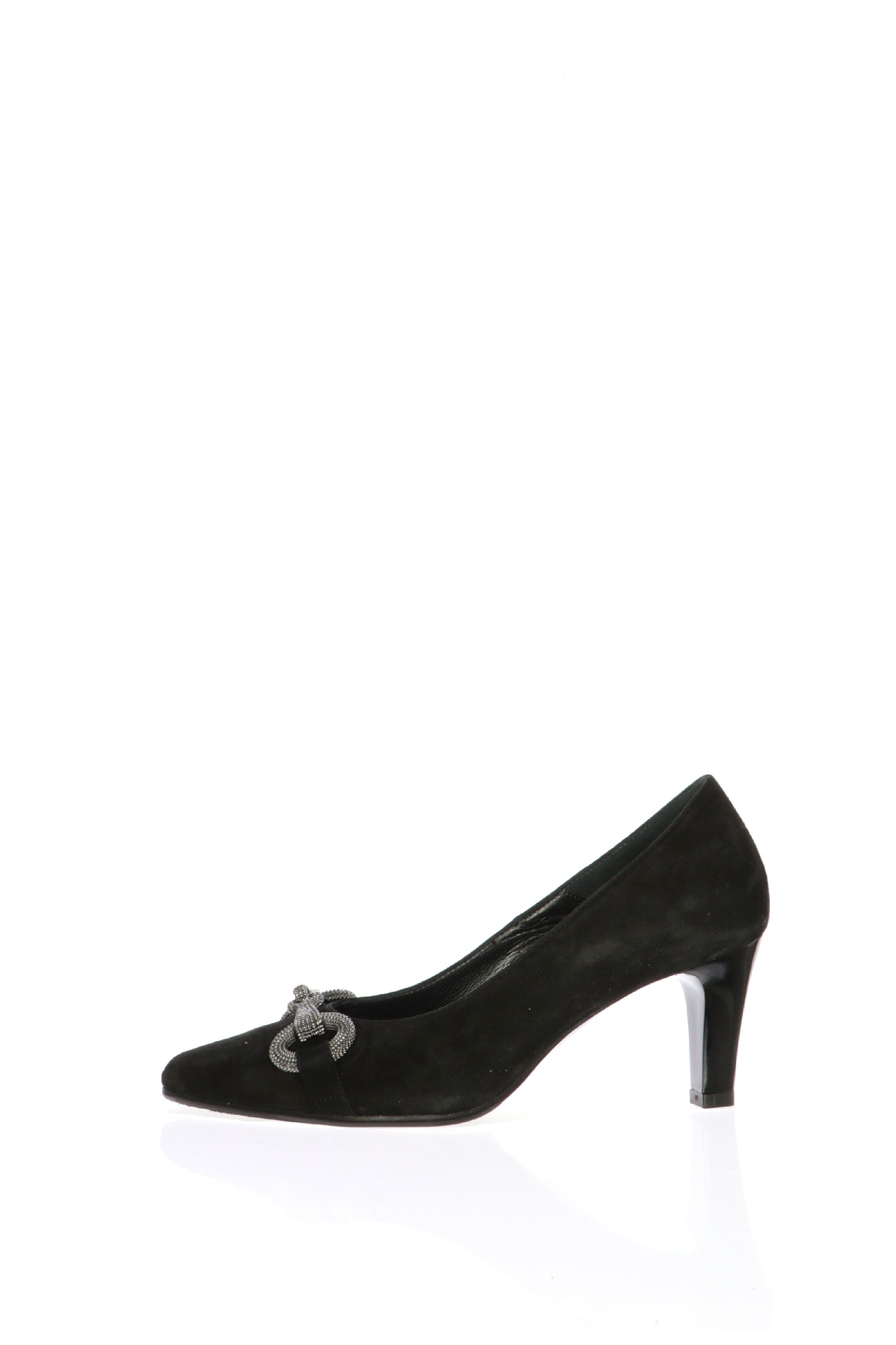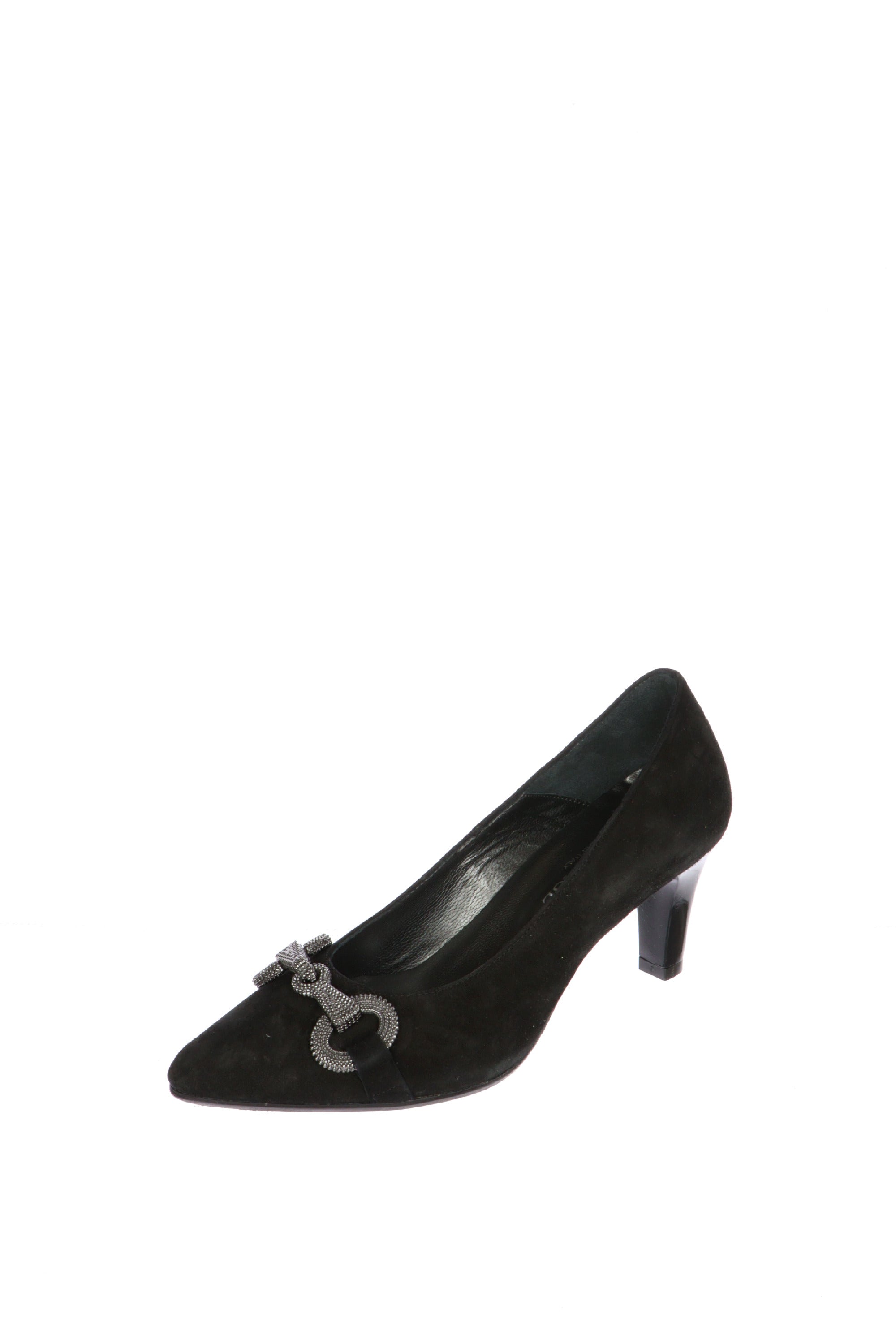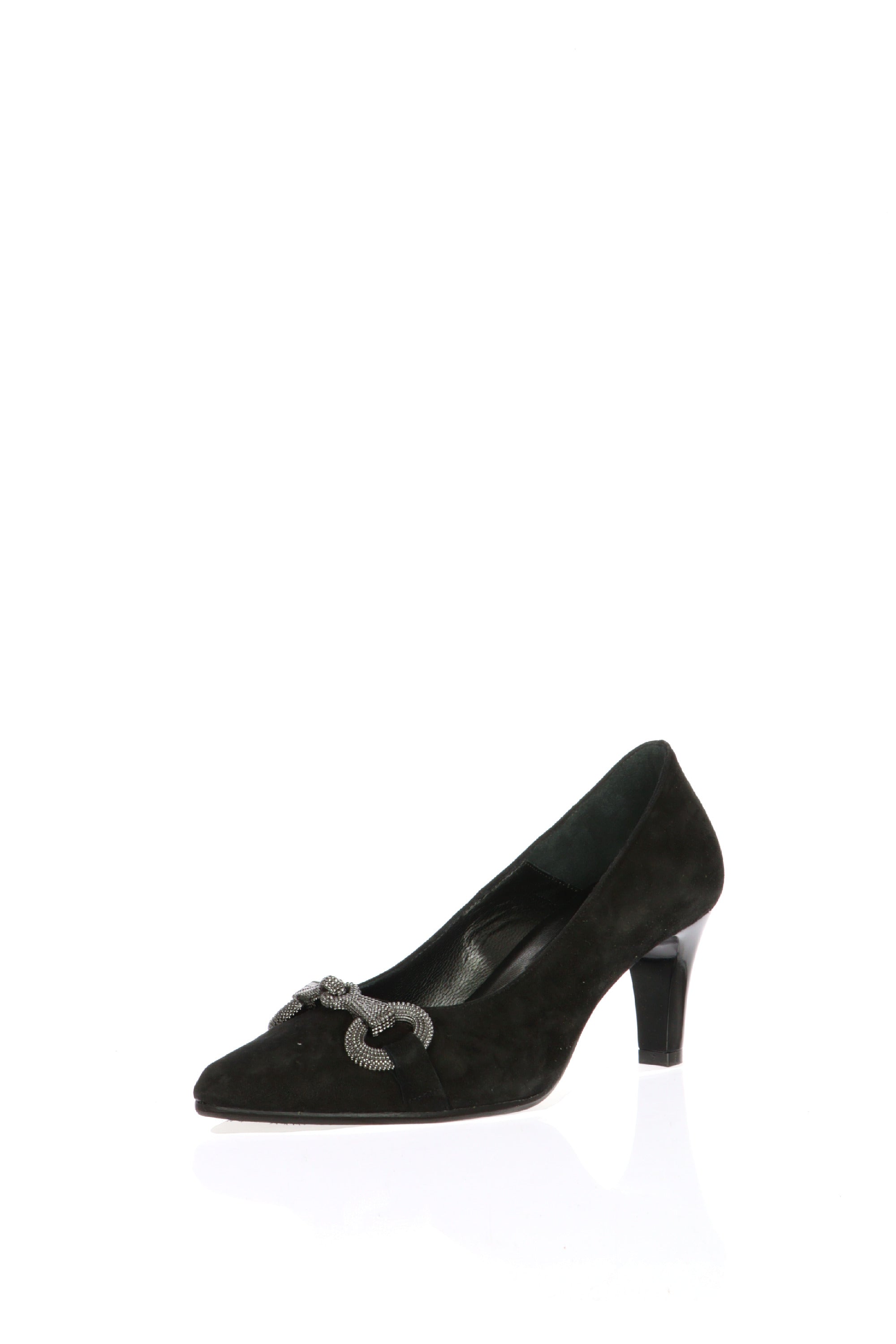 Decolletè nero in camoscio con accessorio brunito. Comodo e avvolgente, con pianta larga, è il decolletè dalla forma classa con il tocco di tendenza! Stupisciti per sua comodità! Soffice Sogno, qualità artigianale made in Italy