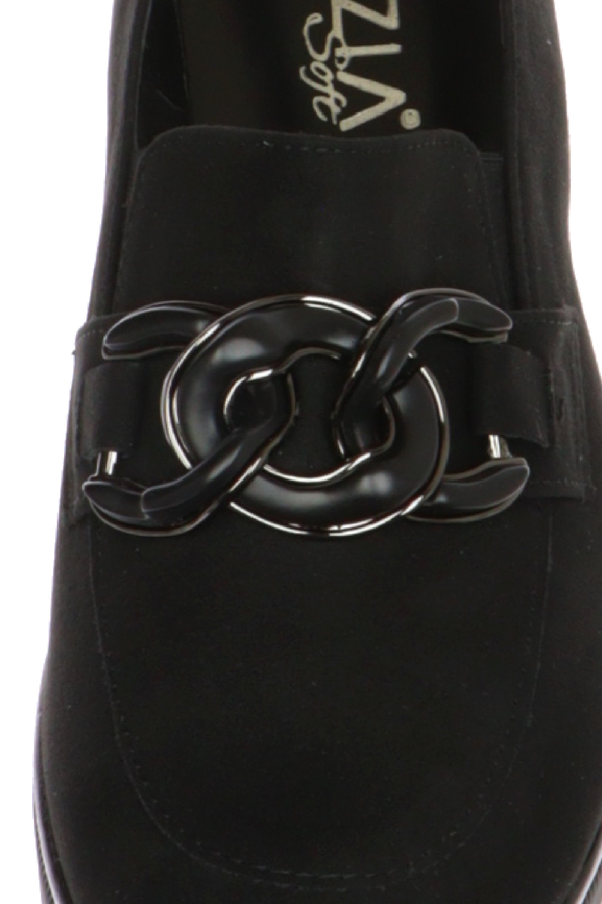 Mocassino Donna Cinzia Soft: Stile Glamour e Comfort QuotidianoEleva il tuo look con il mocassino donna Cinzia Soft, che unisce l'eleganza classica a un tocco di grinta moderna. Un vero must-have per chi cerca una calzatura che sia allo stesso tempo comoda e di grande tendenza.Dettagli e Vantaggi:Design Sofisticato: Realizzato in morbido camoscio nero, questo mocassino si distingue per l'audace maxi-catena color argento sul collo del piede, un dettaglio di tendenza che dona un tocco di carattere e modernità.Comfort e Stabilità: La suola a zeppa, ammortizzata e robusta, non solo slancia la figura, ma garantisce un'andatura stabile e leggera per tutta la giornata. La suola con motivo a coste aggiunge un tocco di stile in più e un'ottima aderenza.Versatilità: Perfetto da abbinare a jeans, pantaloni sartoriali o gonne, questo mocassino è la soluzione ideale per ogni occasione, dall'ufficio al tempo libero.Scegli l'eleganza e la qualità Made in Italy del mocassino Cinzia Soft e preparati a camminare con stile.