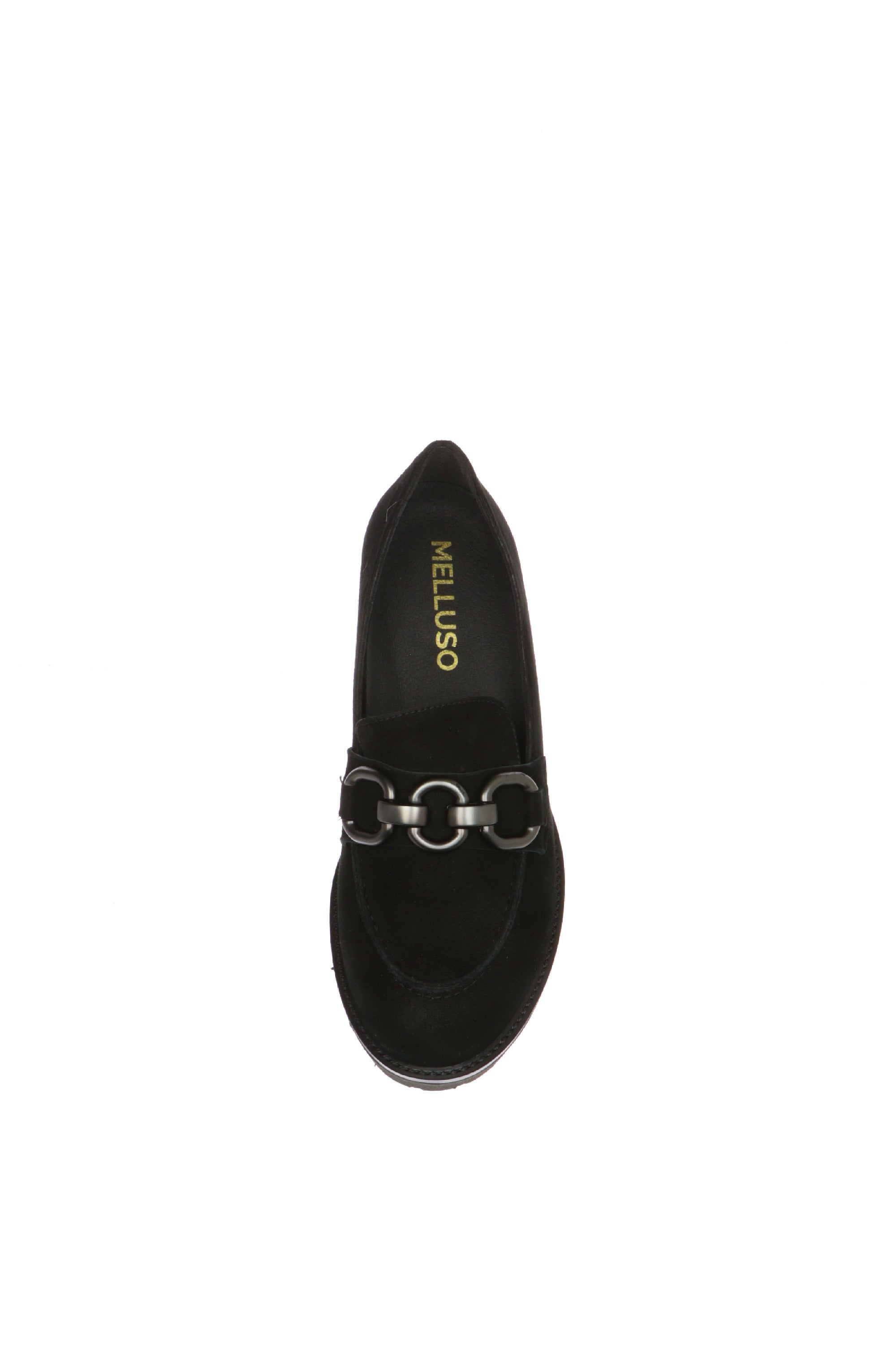 Mocassino casual in vera pelle scamosciata nero, accessorio catena e tacco largo. Plantare estraibile imbottito, ideale per chi ne possiede già uno  proprio ortopedico. Parole d'ordine....Riciclo! Melluso sostiene il nostro pianeta, per ridurre l'impatto sull'ambiente, riutilizza parti con materiale riciclato. Il top della tendenza per questa stagione! Il confort che non ti aspetti Melluso Walk