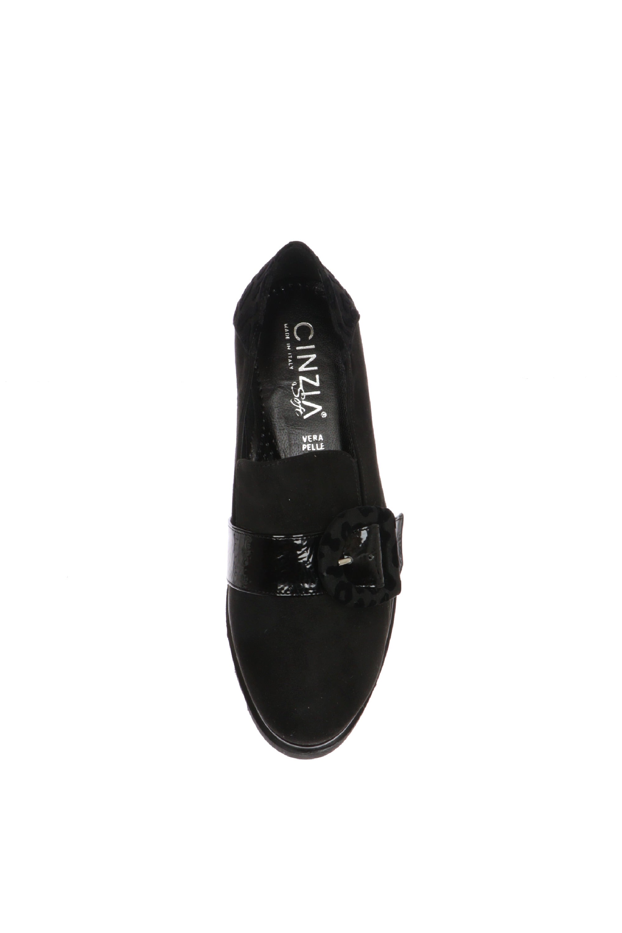 Mocassino in camoscio nero e torrtora con fibbia Cinzia Soft