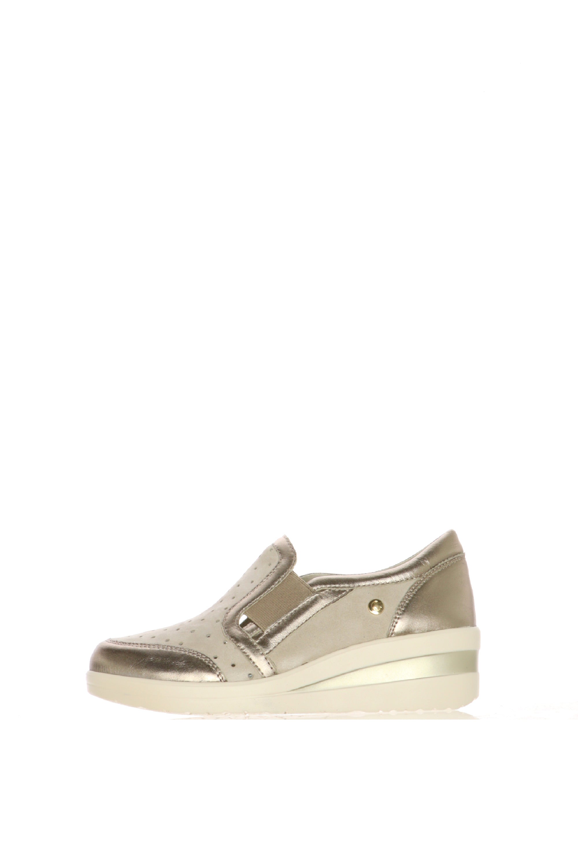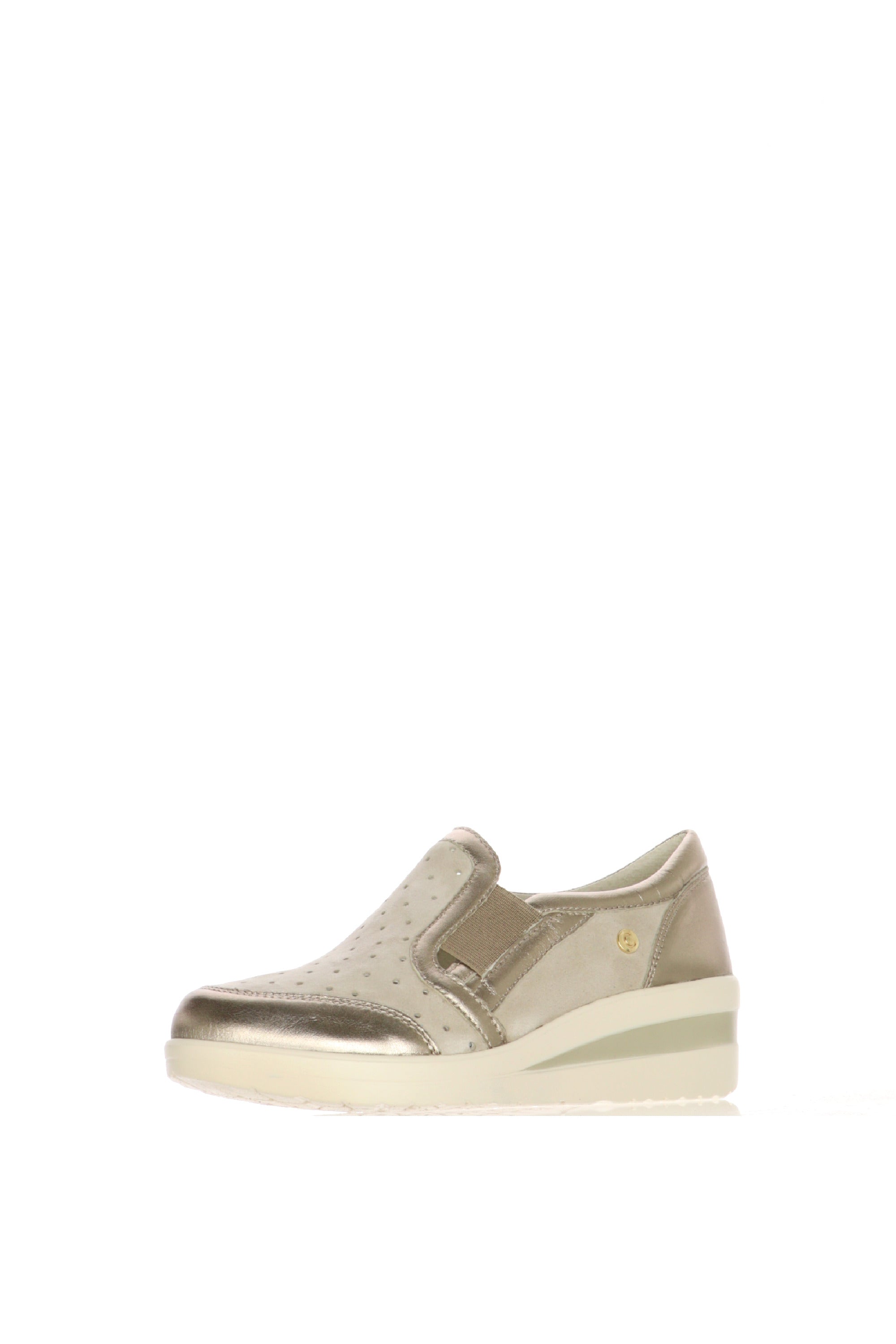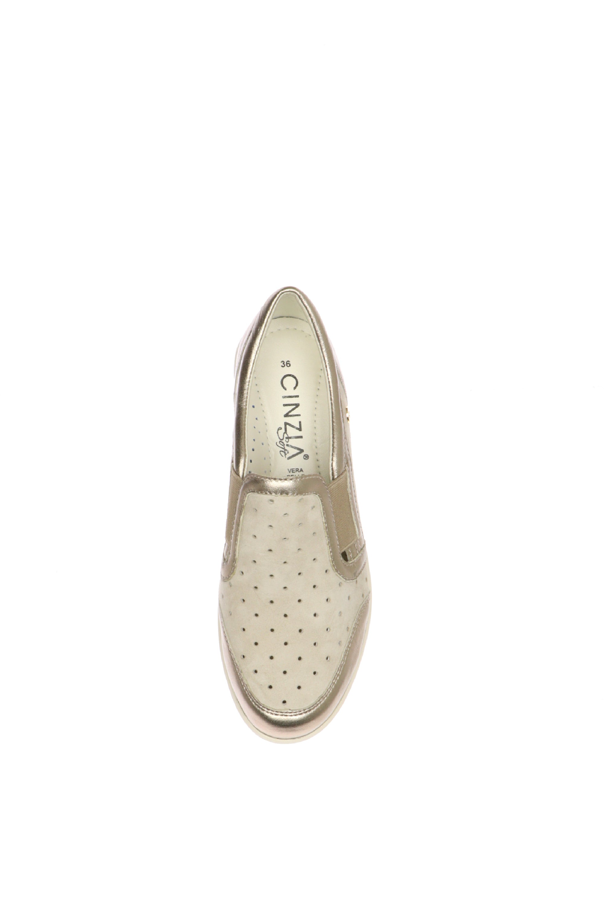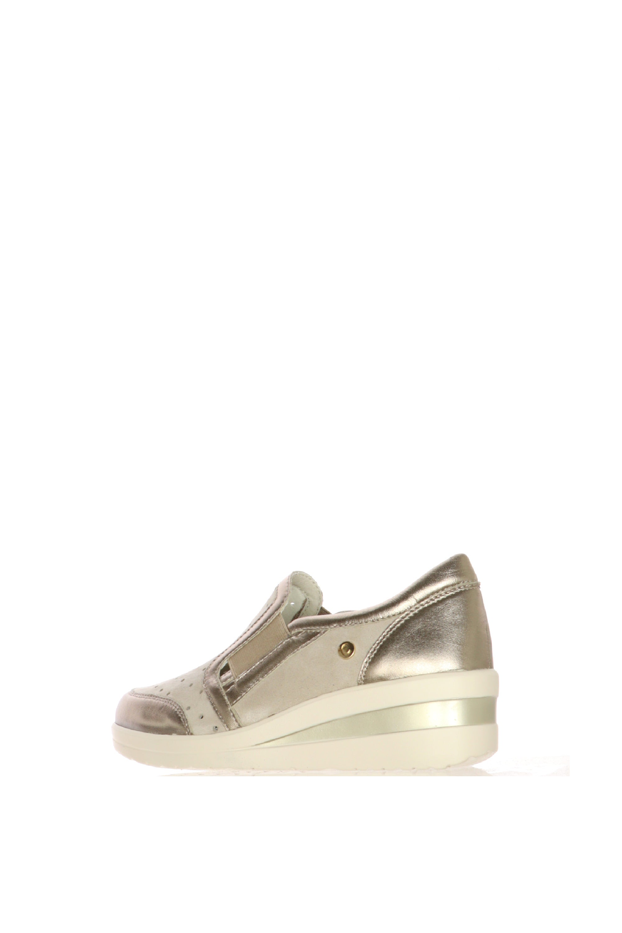 Il perfetto connubio tra praticità sportiva e dettagli glamour. Questo mocassino slip-on Cinzia Soft è progettato per la donna dinamica che cerca una calzatura versatile, capace di offrire un benessere duraturo senza rinunciare a un look curato. Realizzato in una raffinata tonalità tortora scamosciata, è impreziosito da profili laminati color bronzo che ne definiscono la silhouette moderna.Dimentica la fatica di fine giornata. Grazie alla doppia fascia elastica laterale, questo mocassino garantisce una calzata immediata e adattabile a ogni tipo di collo del piede. La tomaia presenta una delicata traforatura laserata che favorisce il riciclo dell'aria, mantenendo il piede fresco e asciutto anche dopo molte ore di utilizzo.