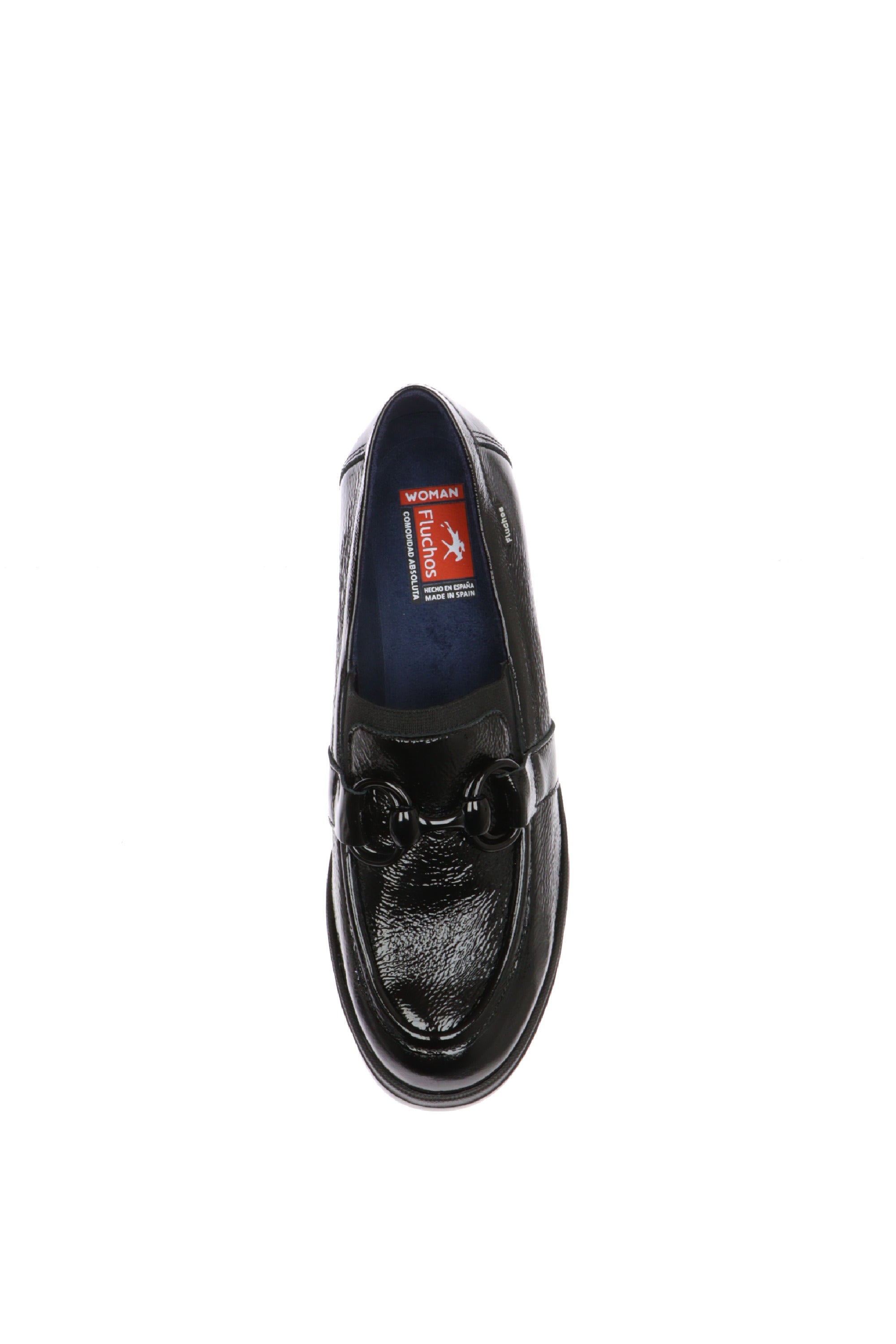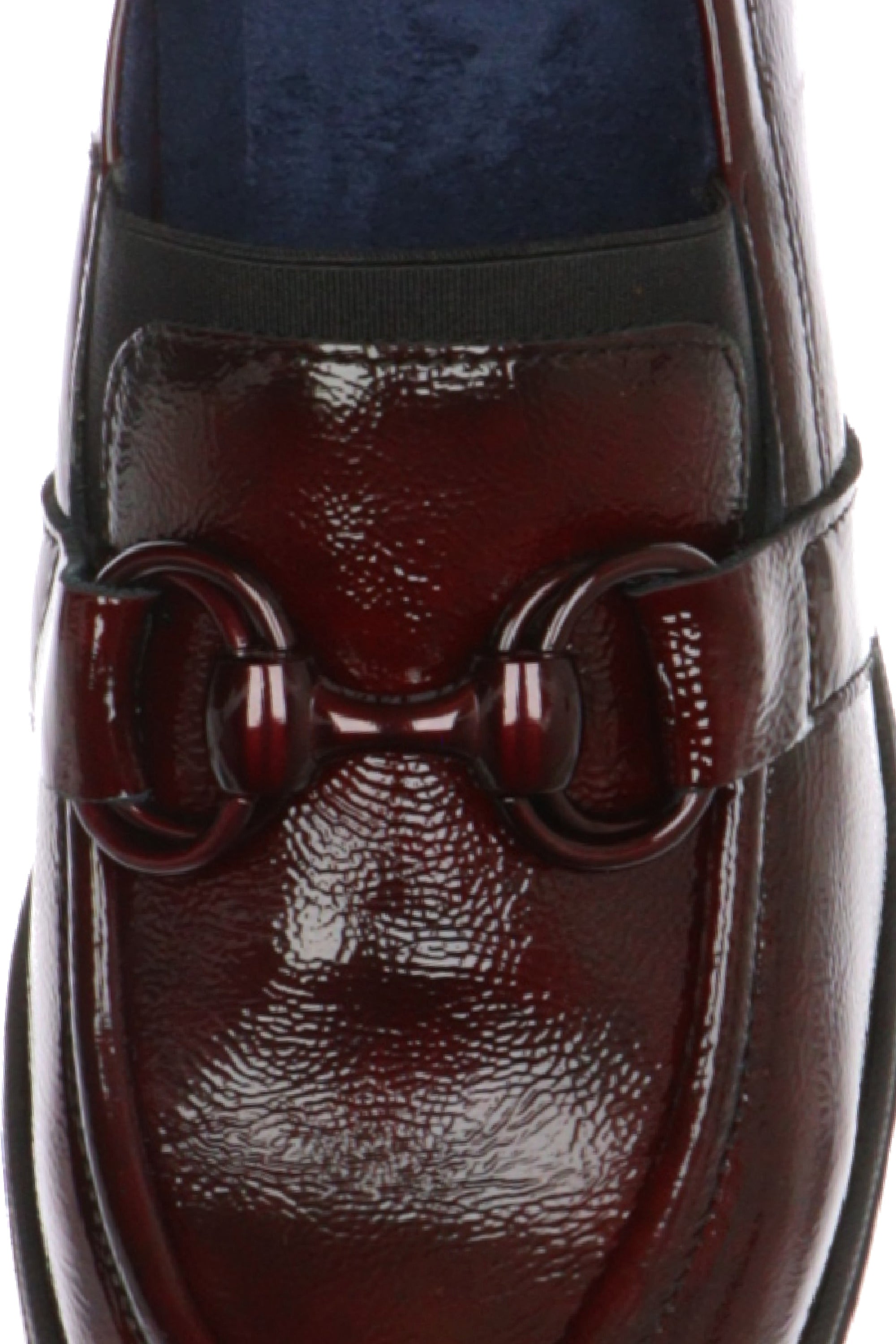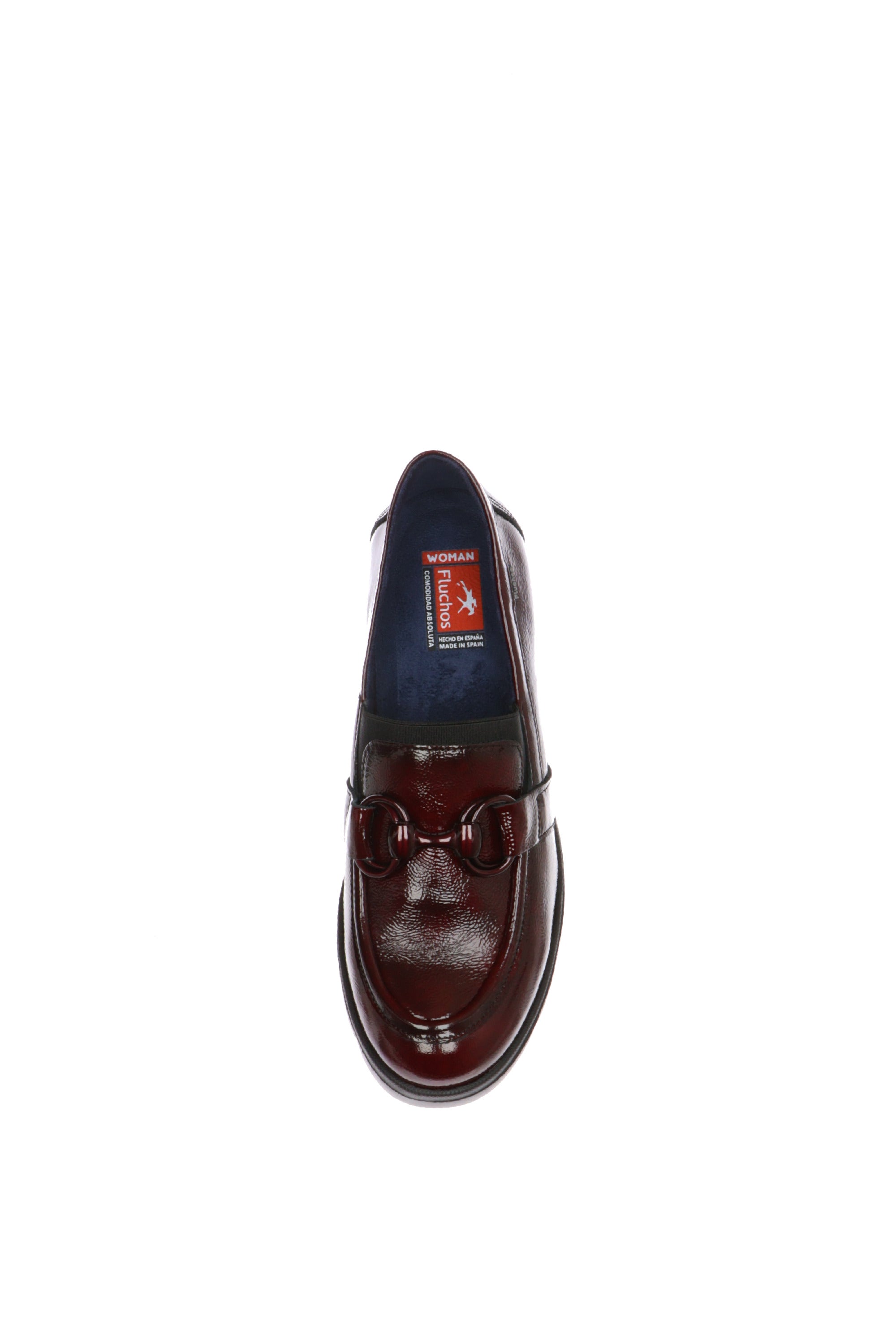Mocassino in pelle lucida bordeaux e nero con plantare estraibile Fluchos