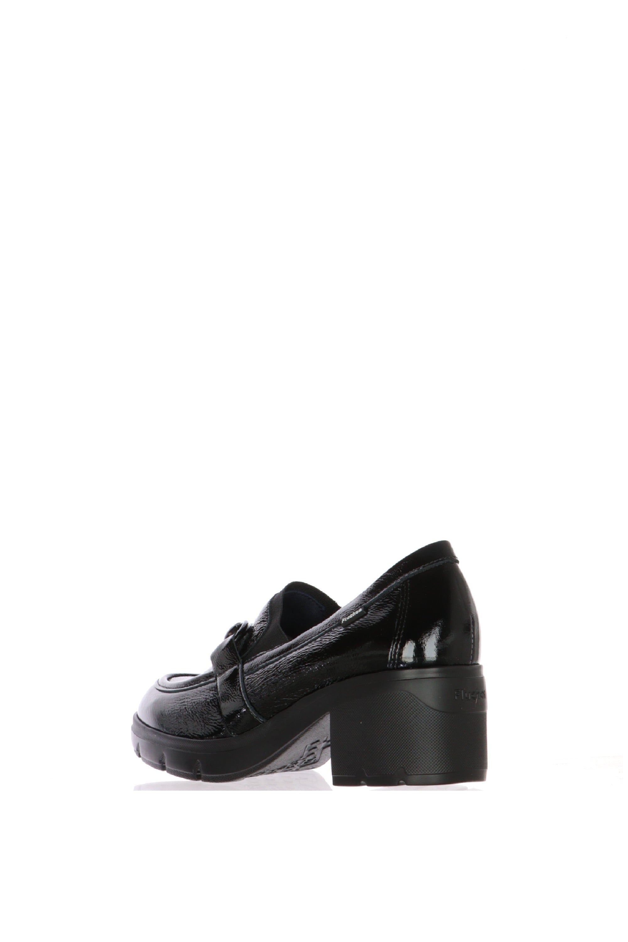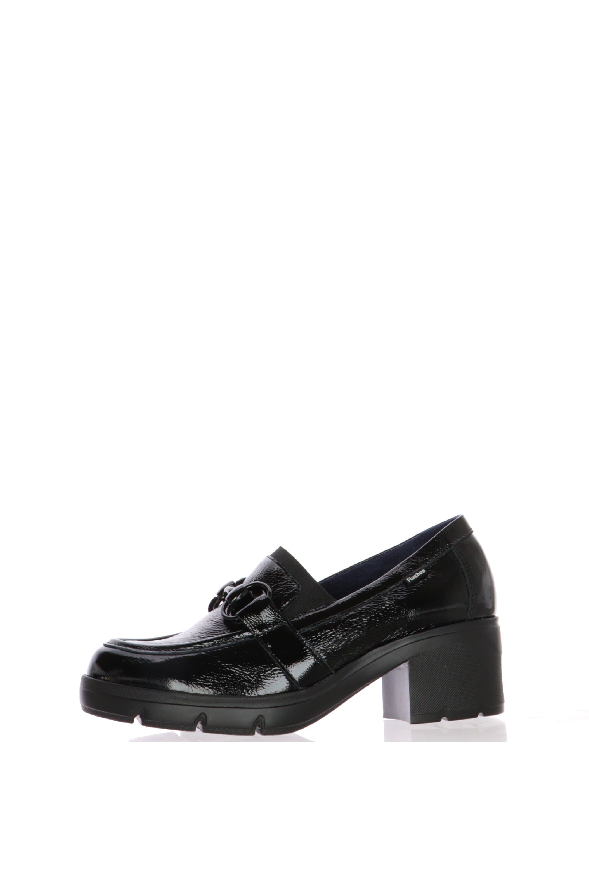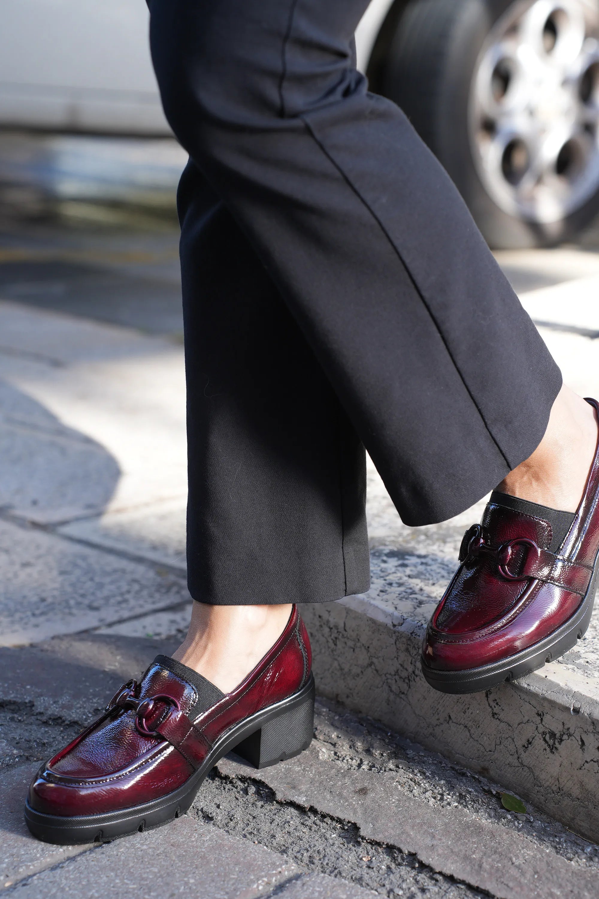 Mocassino in pelle lucida bordeaux e nero con plantare estraibile Fluchos