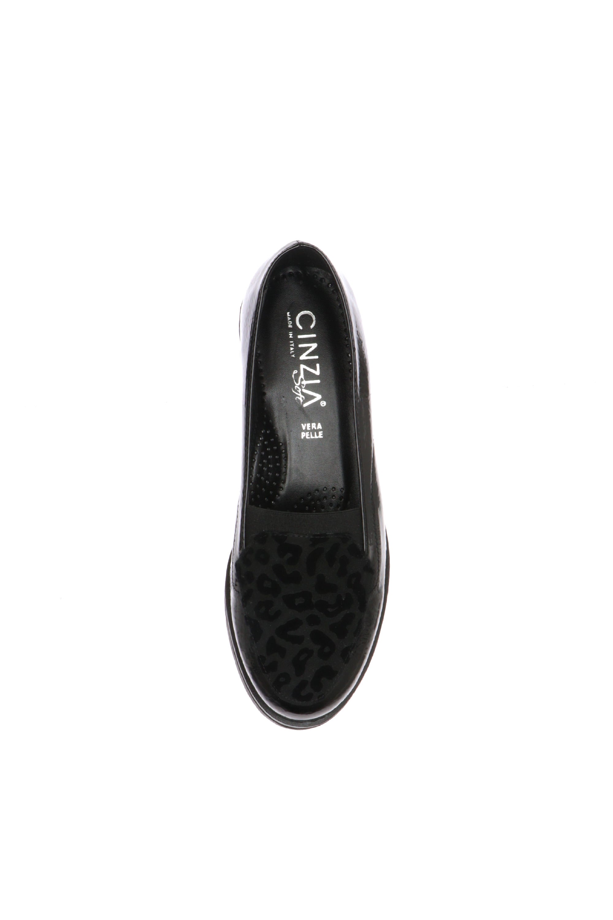 Mocassino in pelle lucida con zeppa media Cinzia Soft
