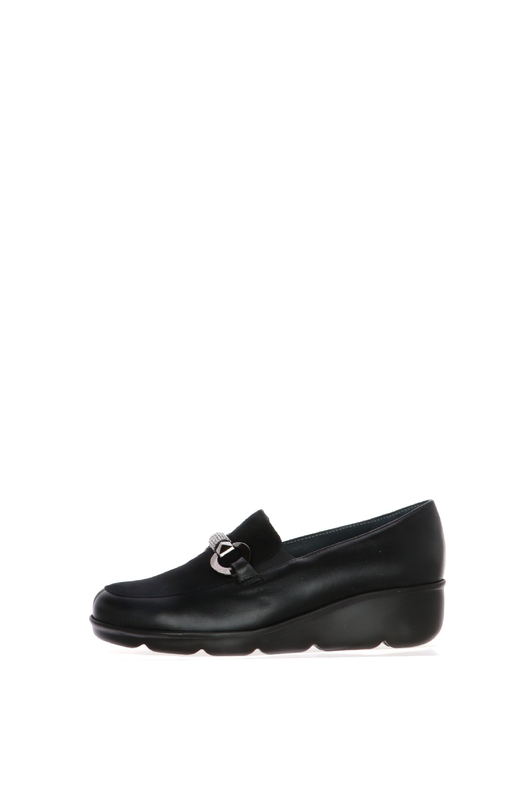 Lasciati sedurre dall'eleganza e dal comfort del mocassino "Soffice Sogno", una calzatura pensata per chi desidera unire stile e benessere. Questo modello, dal design raffinato, è la scelta ideale per ogni occasione, dall'ufficio a una serata fuori.Realizzato con una tomaia che combina nappa e morbido camoscio, questo mocassino ti regala un gioco di texture che attira lo sguardo. La sua profonda tonalità nera aggiunge un tocco di classe, mentre la catena con strass sul collo del piede eleva il design con un tocco di luce e glamour.La zeppa leggera e flessibile è stata progettata per offrirti un'ammortizzazione superiore, garantendo che ogni tuo passo sia comodo e stabile. Indossalo con un pantalone sartoriale per un look da ufficio impeccabile o con un paio di jeans per un tocco chic e casual.