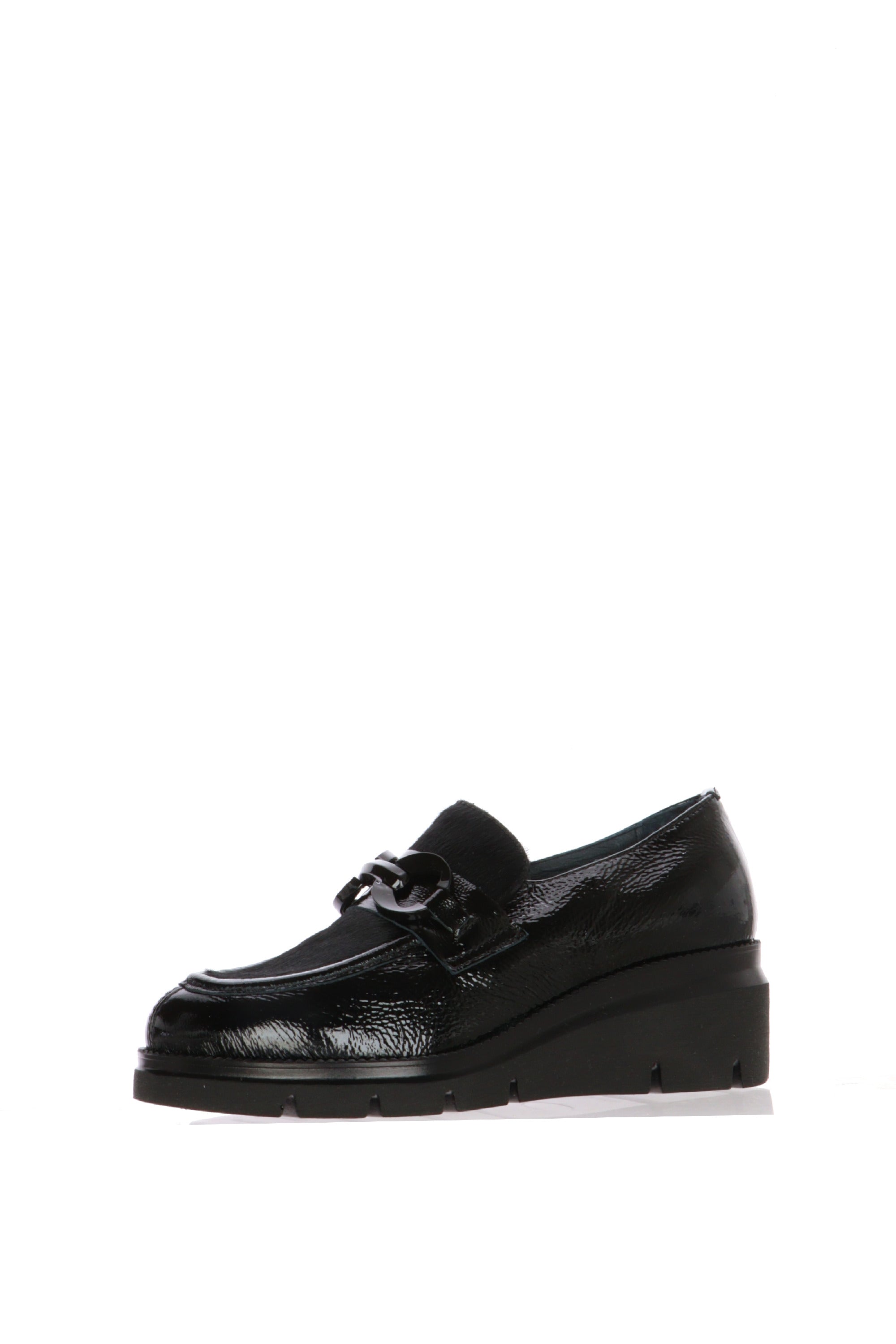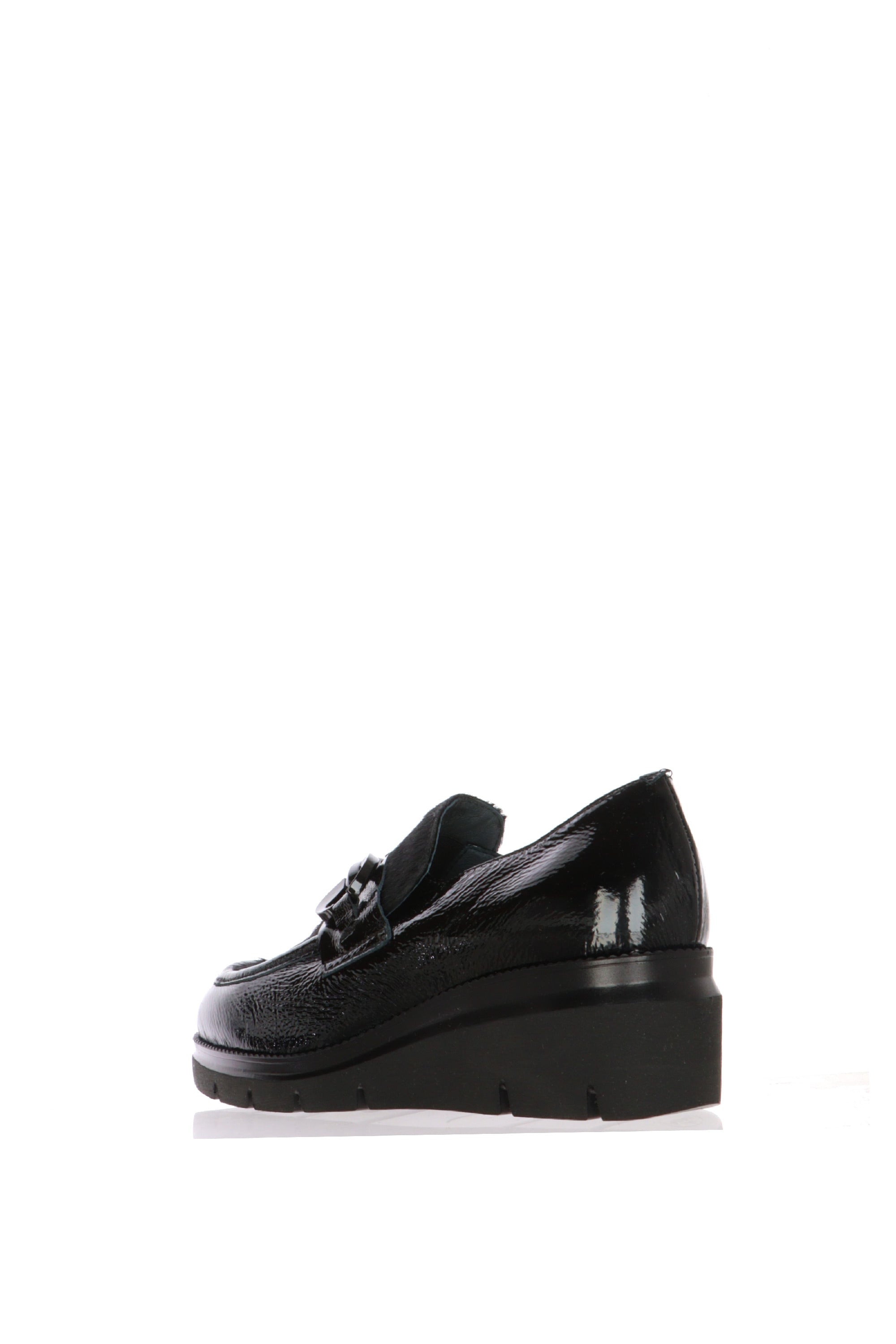Eleva il tuo stile con i mocassini neri 'Soffice Sogno', la perfetta fusione di eleganza e comfort. Progettati per la donna moderna che non vuole rinunciare né allo stile né alla praticità, questi mocassini sono un vero e proprio must-have per ogni guardaroba.Realizzati con una pregiata vernice naplack lucida, catturano la luce e aggiungono un tocco di raffinatezza a ogni passo. La punta con cucitura in rilievo e la fibbia a catena in metallo nero conferiscono un look deciso e di tendenza.Il dettaglio che fa la differenza è la patta superiore in cavallino morbido e liscio, che contrasta splendidamente con la lucentezza della vernice. Questa texture non solo dona un'estetica unica, ma rende anche la calzata ancora più confortevole, avvolgendo il piede in un abbraccio soffice.La zeppa robusta e scanalata, alta circa 4-5 cm, offre un'ottima stabilità e ammortizzazione, garantendo comfort per tutto il giorno. Ideali per l'ufficio, un aperitivo con le amiche o una passeggiata in città, questi mocassini sono versatili e si adattano a ogni occasione.