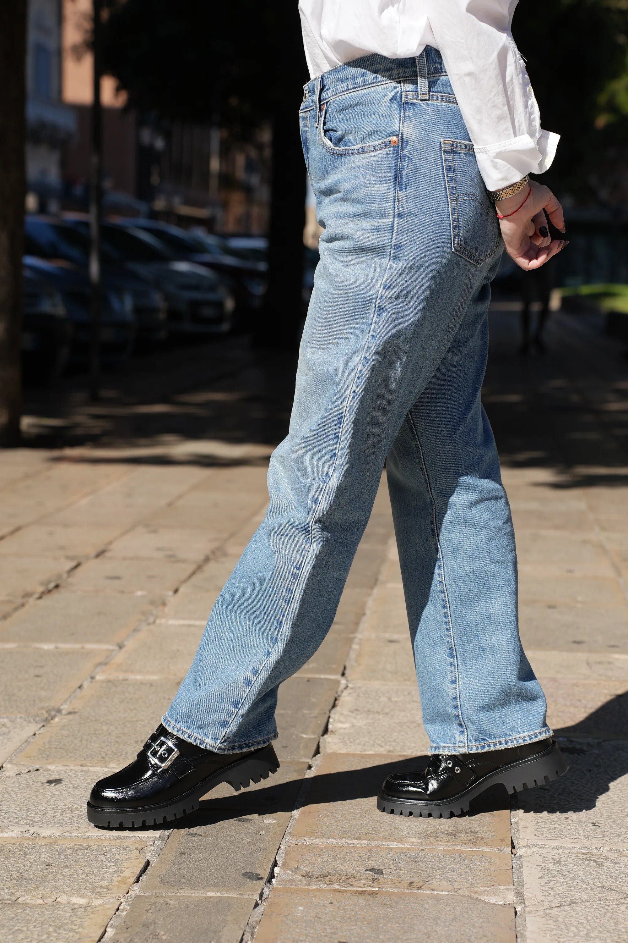 Mocassino nero Tamaris da donna con maxi fibbia – Stile moderno e comfort quotidianoDai un tocco grintoso e contemporaneo al tuo outfit con il mocassino nero Tamaris da donna, un modello versatile perfetto per la stagione autunno/inverno. Realizzato in eco-pelle lucida effetto vernice, questo mocassino si distingue per la maxi fibbia decorativa con logo Tamaris che dona carattere e personalità a ogni look.La suola alta in gomma con battistrada carrarmato assicura comfort e stabilità in ogni passo, ideale per chi è sempre in movimento ma non vuole rinunciare allo stile. L'interno è progettato per garantire un’ottima calzata e massimo comfort anche dopo molte ore.