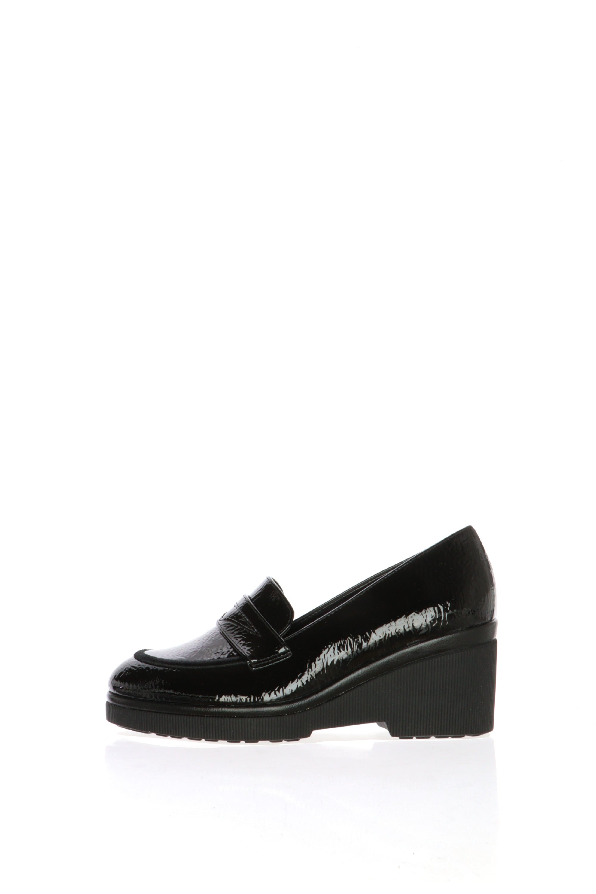 Mocassino zeppa alta in vernice nera Cinzia Soft
