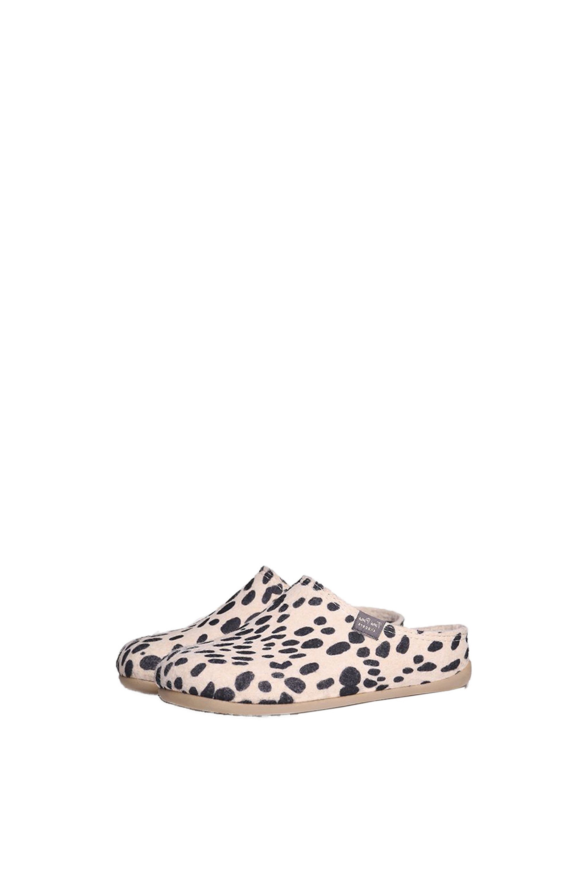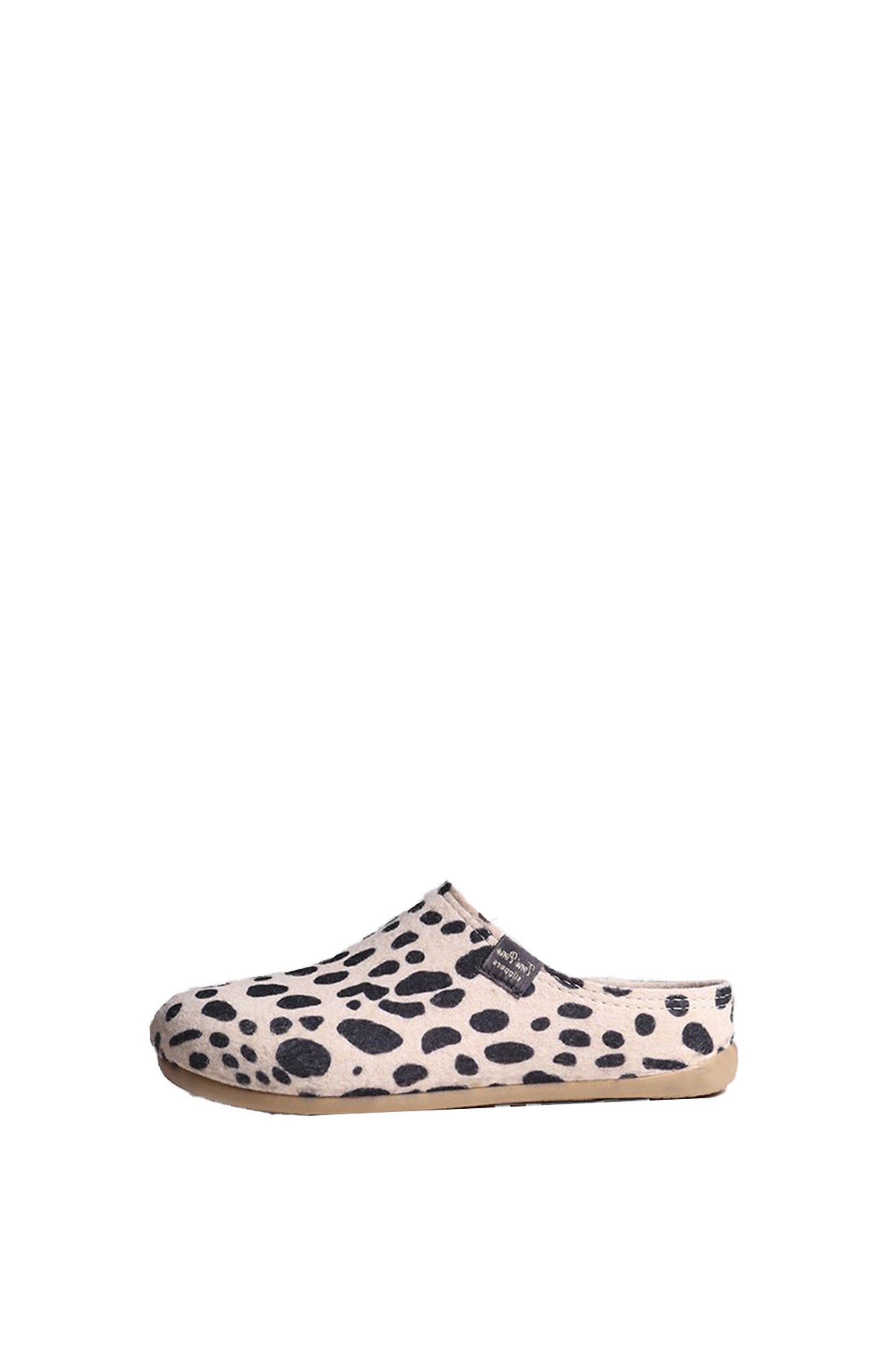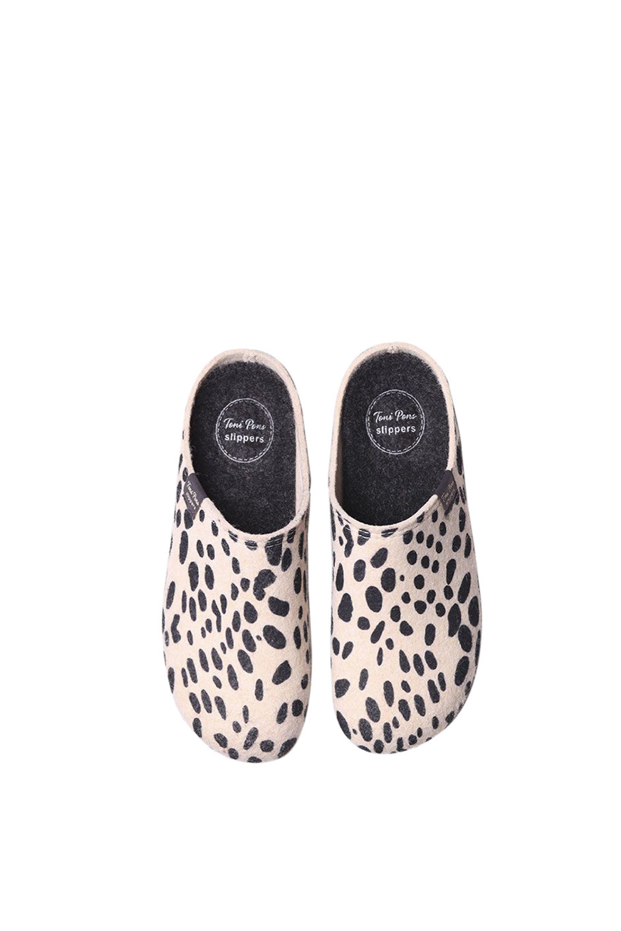 Pantofole invernali da donna. Realizzate in tessuto con feltro con fantasia animalier. Questo modello si adatta alla taglia comune; se sei indeciso tra due taglie ti consigliamo di scegliere la taglia più grande. Sconsigliamo il lavaggio in lavatrice. Disponibile nei numeri grandi donna dal 42 al 44. Made in Spain