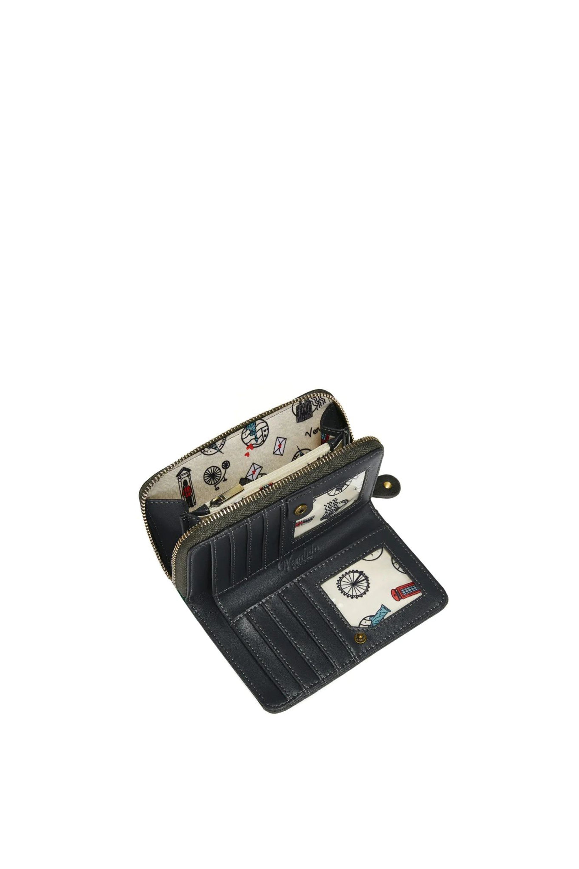 l preferito da tutte è tornato: il Portafoglio da Donna con Zip The Witches Pantry. Magnifico come sempre, con tanto spazio per il denaro, le carte e gli scontrini all'interno di uno scomparto con chiusura lampo. È realizzato in pelle vegana e possiede un design fronte-retro bicolore che offre una doppia dose di fascino. Che cosa combinerà il nostro gatto stregato stavolta? Meglio tenerlo d'occhio…