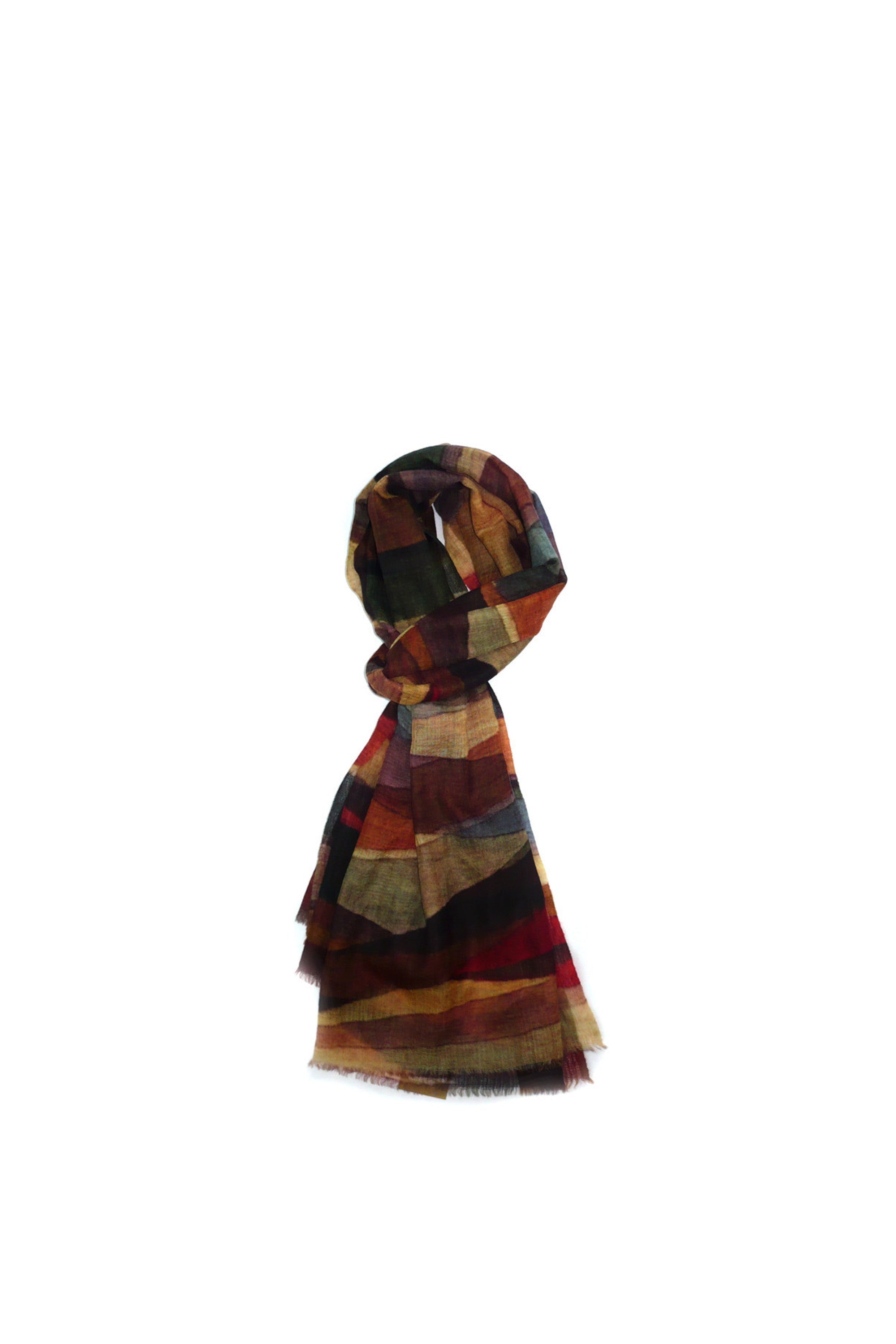 Sciarpa fantasia nei toni caldi dal beige all'arancio al marrone, in lana morbida, Acquamarine. Un tocco di colore ai tuoi outfit!