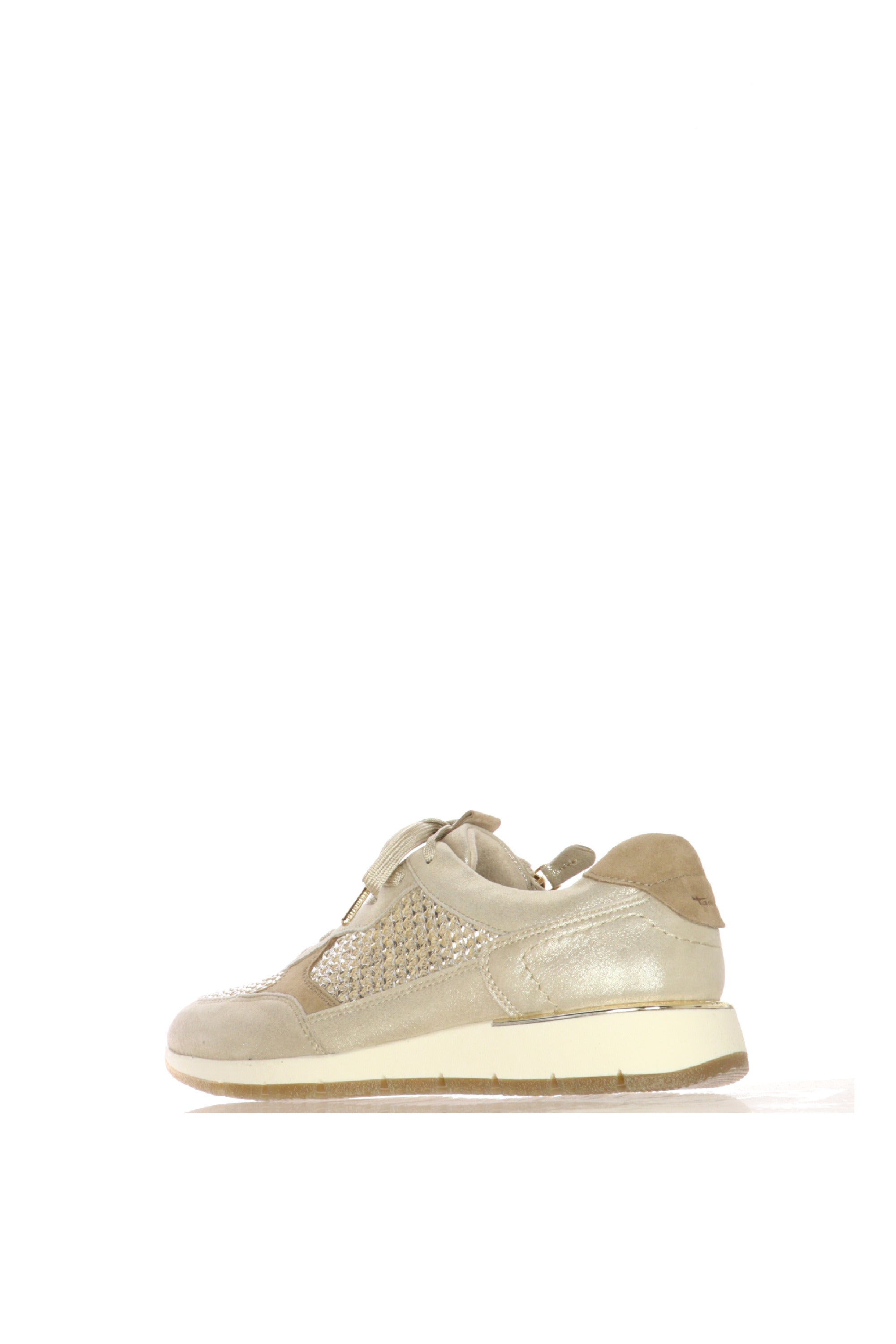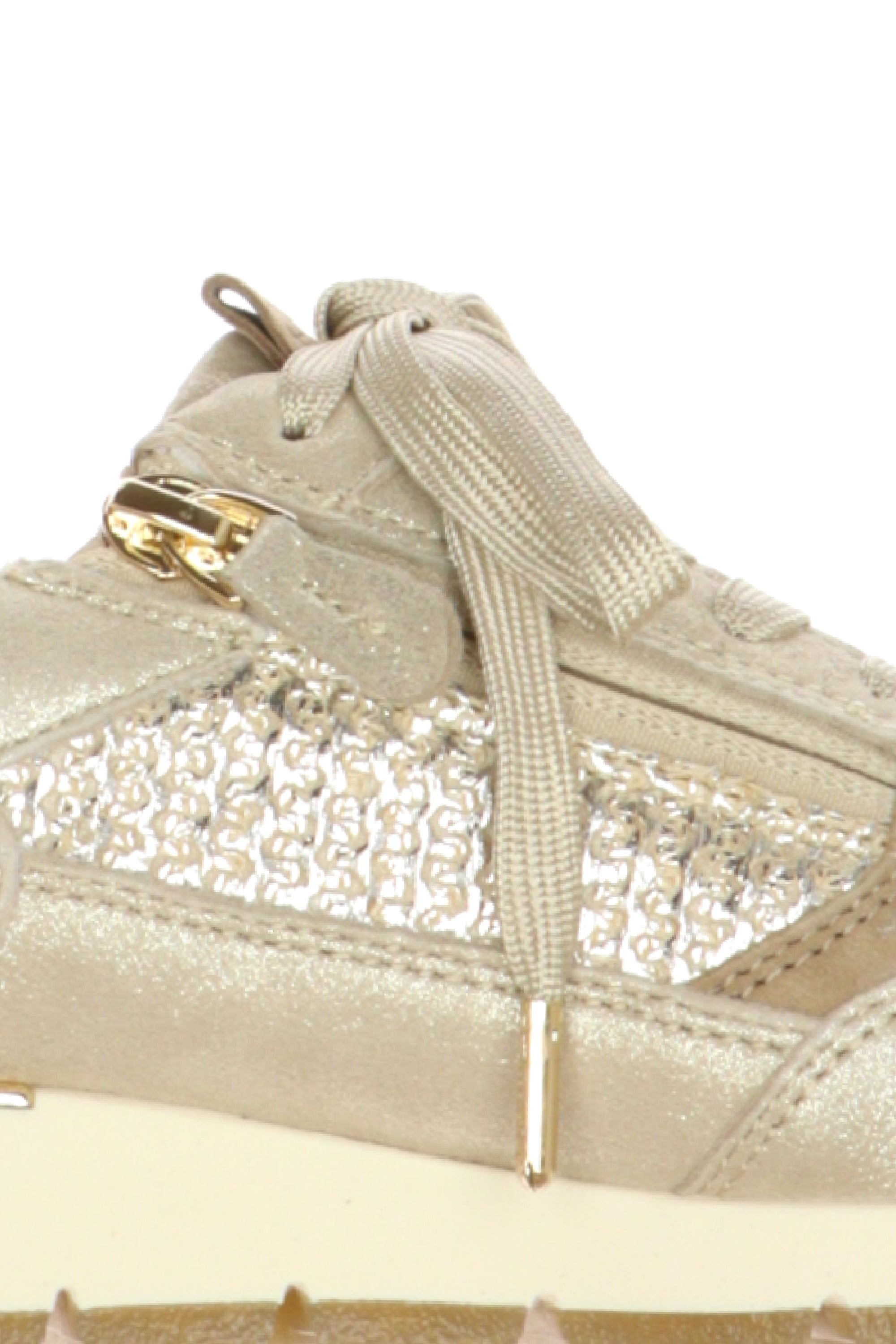 Sneaker beige e oro con laccio e cerniera
