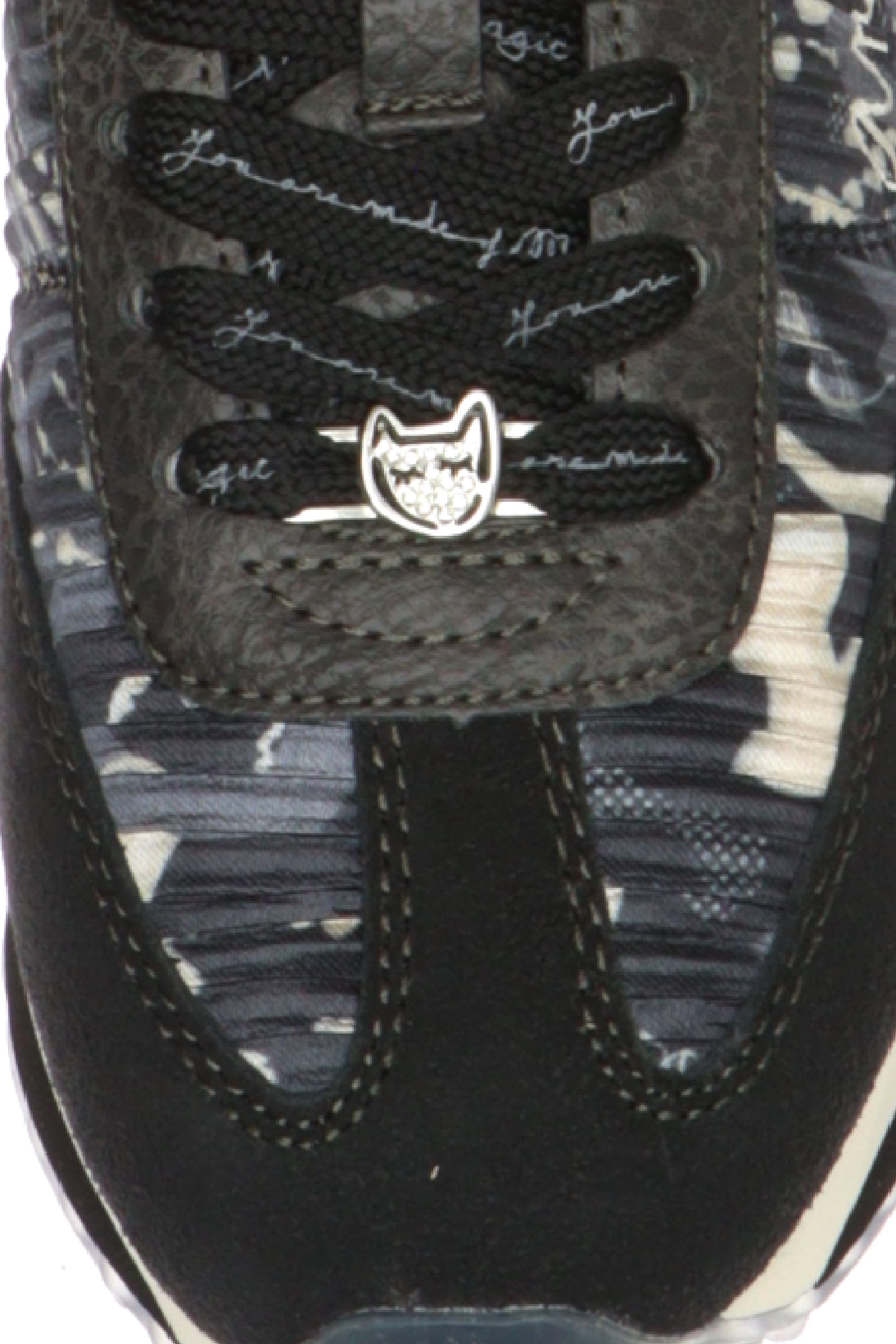 Le scarpe Anekke si distinguono per un'estetica ricercata e originale. La tomaia, realizzata con un tessuto decorato da una stampa a motivo esotico che combina tonalità scure come il nero e il blu, con delicati tocchi di beige, conferisce un look audace e versatile. I dettagli in finta pelle nera e un morbido suede nero ne esaltano il design, garantendo resistenza e durabilità. Il logo "Anekke" finemente ricamato sul lato aggiunge un tocco di eleganza e riconoscibilità, mentre la zeppa bicolore – bianca nella parte superiore e nera in quella inferiore – slancia la figura e offre un supporto ottimale.Comfort e versatilitàOltre al suo fascino estetico, questa sneaker è pensata per offrire il massimo comfort. La zeppa, leggera e ammortizzata, assicura una camminata piacevole per tutto il giorno, rendendola ideale per le tue avventure urbane. Che tu stia esplorando la città, andando a un appuntamento o semplicemente cercando un tocco di stile in più per il tuo look casual, queste scarpe si abbinano perfettamente a jeans, leggings o abiti.