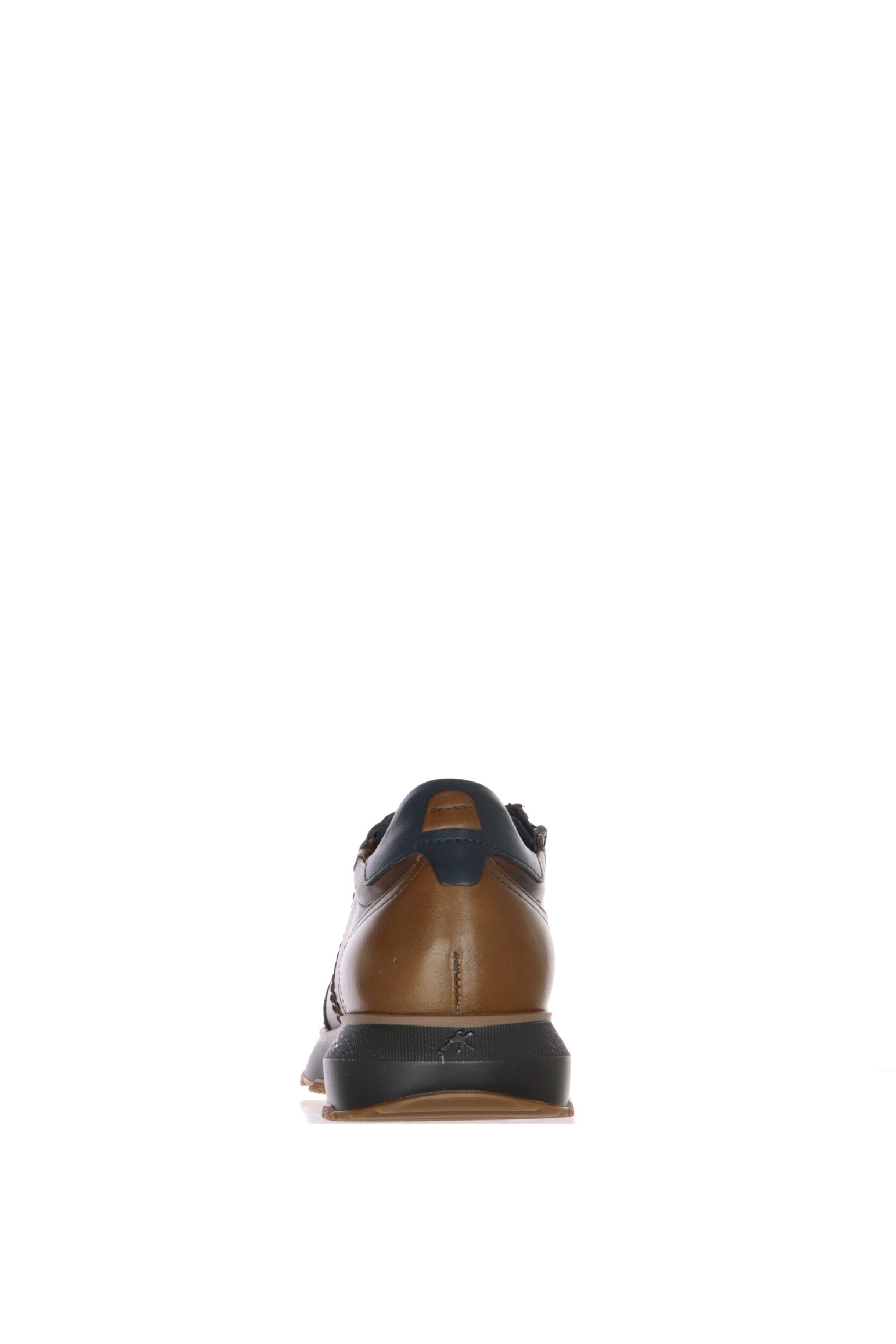 Il design curato è valorizzato dalla ricchezza della pelle e dai dettagli a contrasto che definiscono il look contemporaneo della scarpa:Materiali Premium: Tomaia realizzata in vera pelle liscia di alta qualità, con raffinati inserti in diverse tonalità di marrone e un tocco di colore blu scuro sul tallone, per un contrasto moderno.