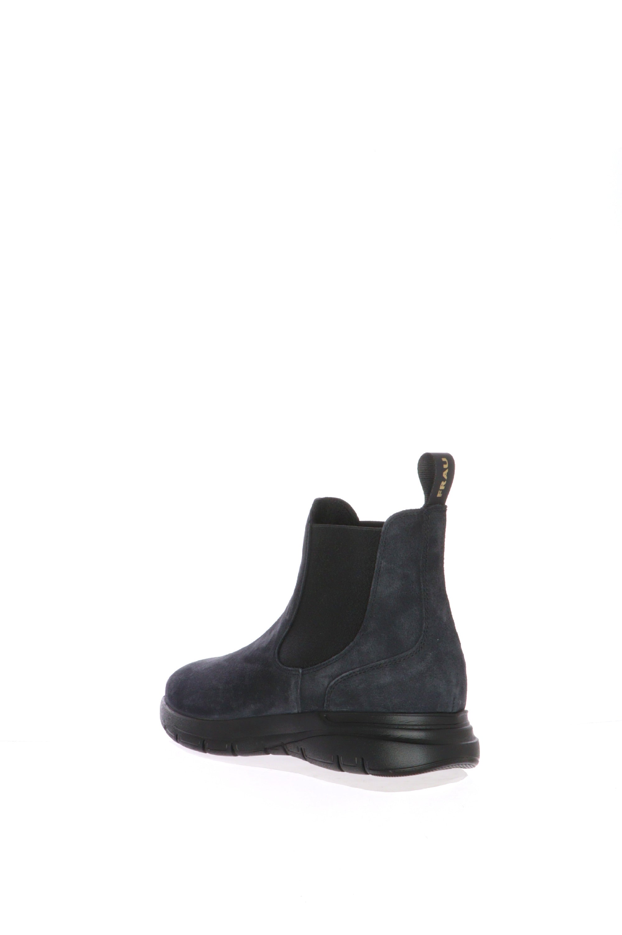 Stivaletto color blu in camoscio, morbidissimo, con elastici laterali. Super leggero, dalla forma innovativa e di tendenza, il modello beatles Frau si adatta a diverse occasioni d'uso e con tanti tipi di outfit diversi, dal casul chick a quello più sportivo di tutti i giorni. Frau, made in Italy