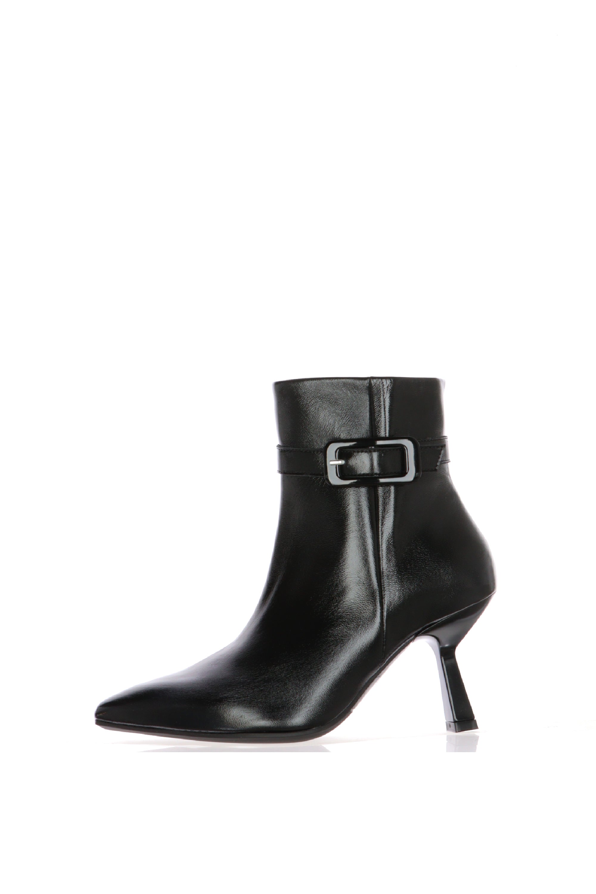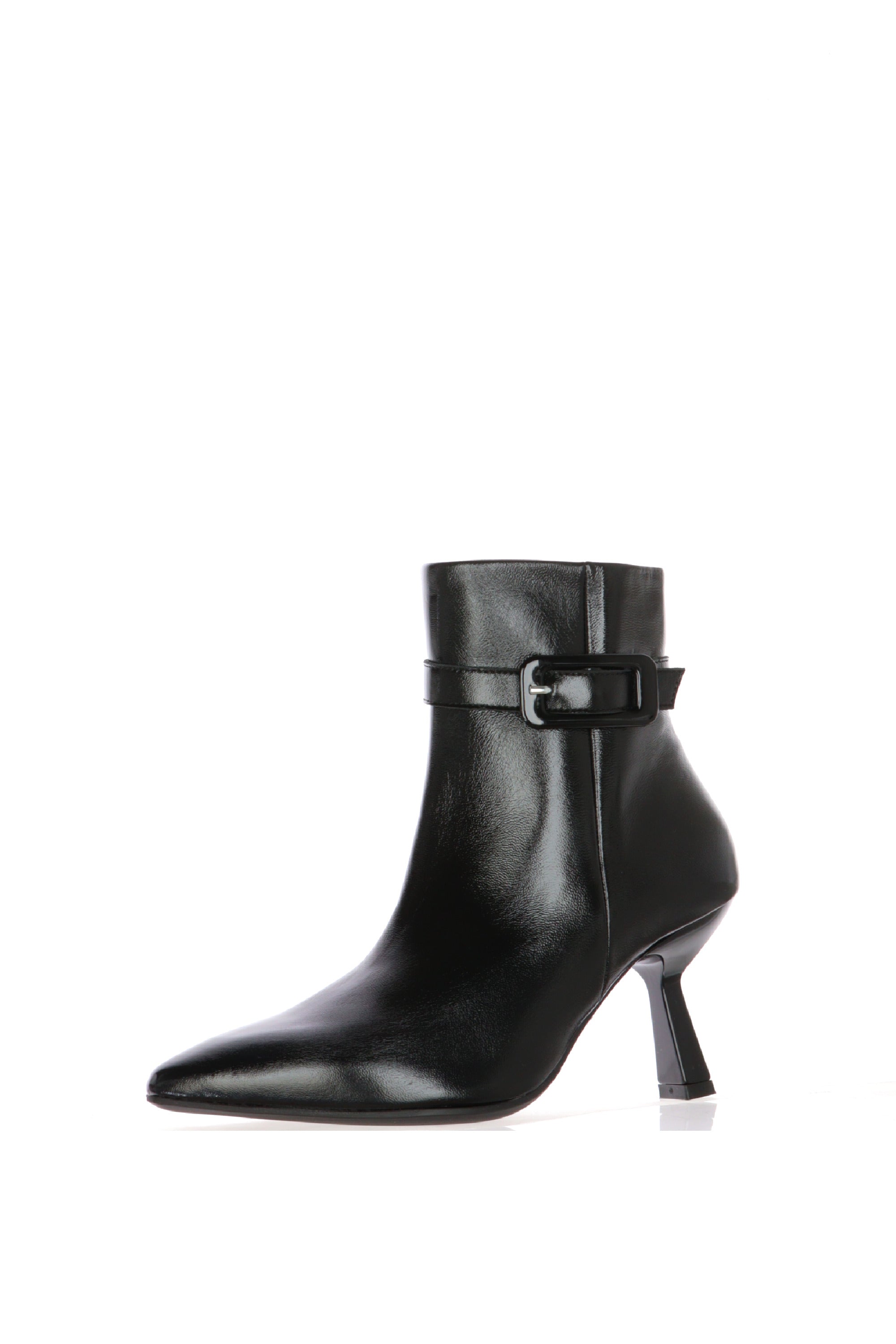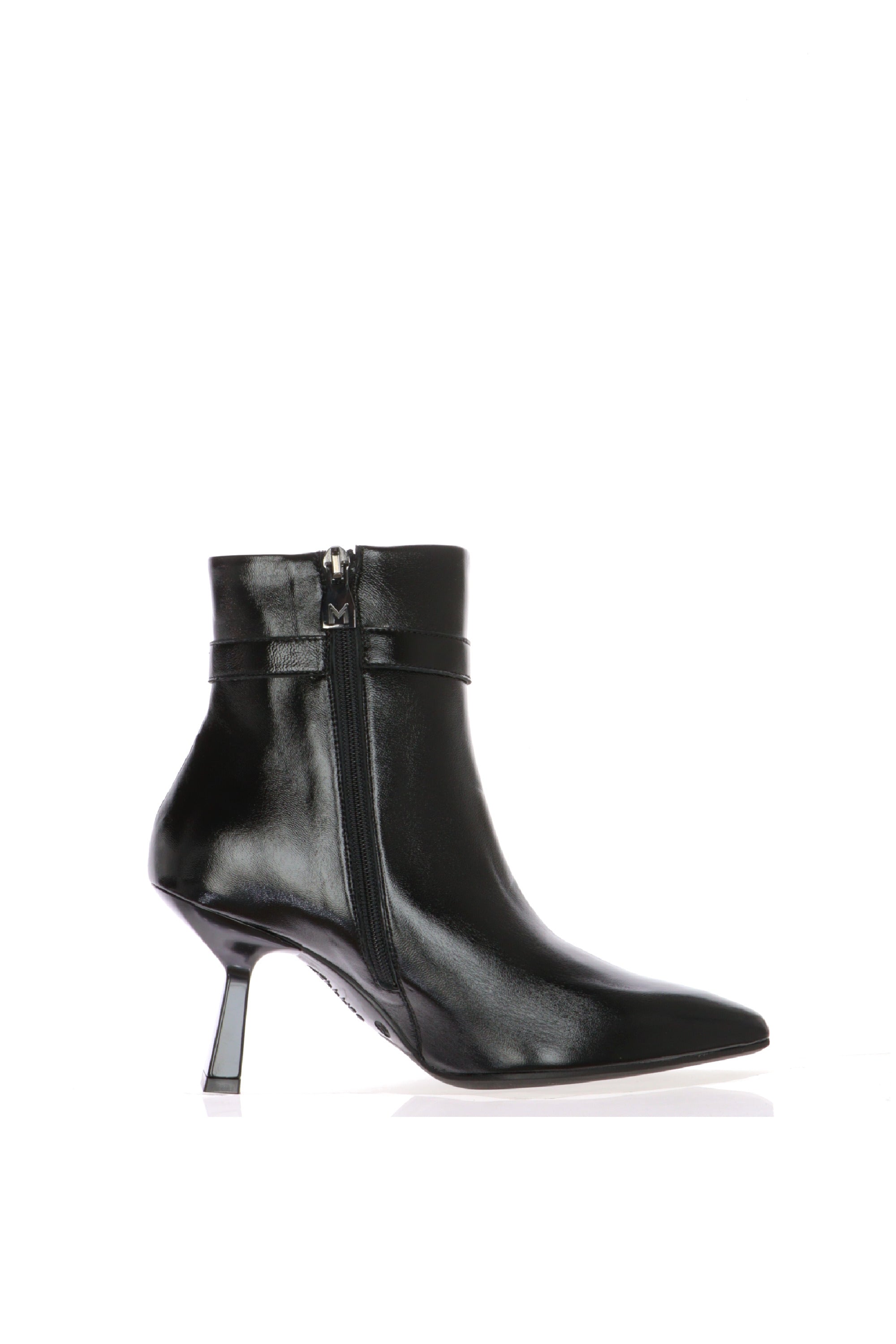Stivaletto elegante in pelle nera tacco a spillo e punta sfilata Melluso