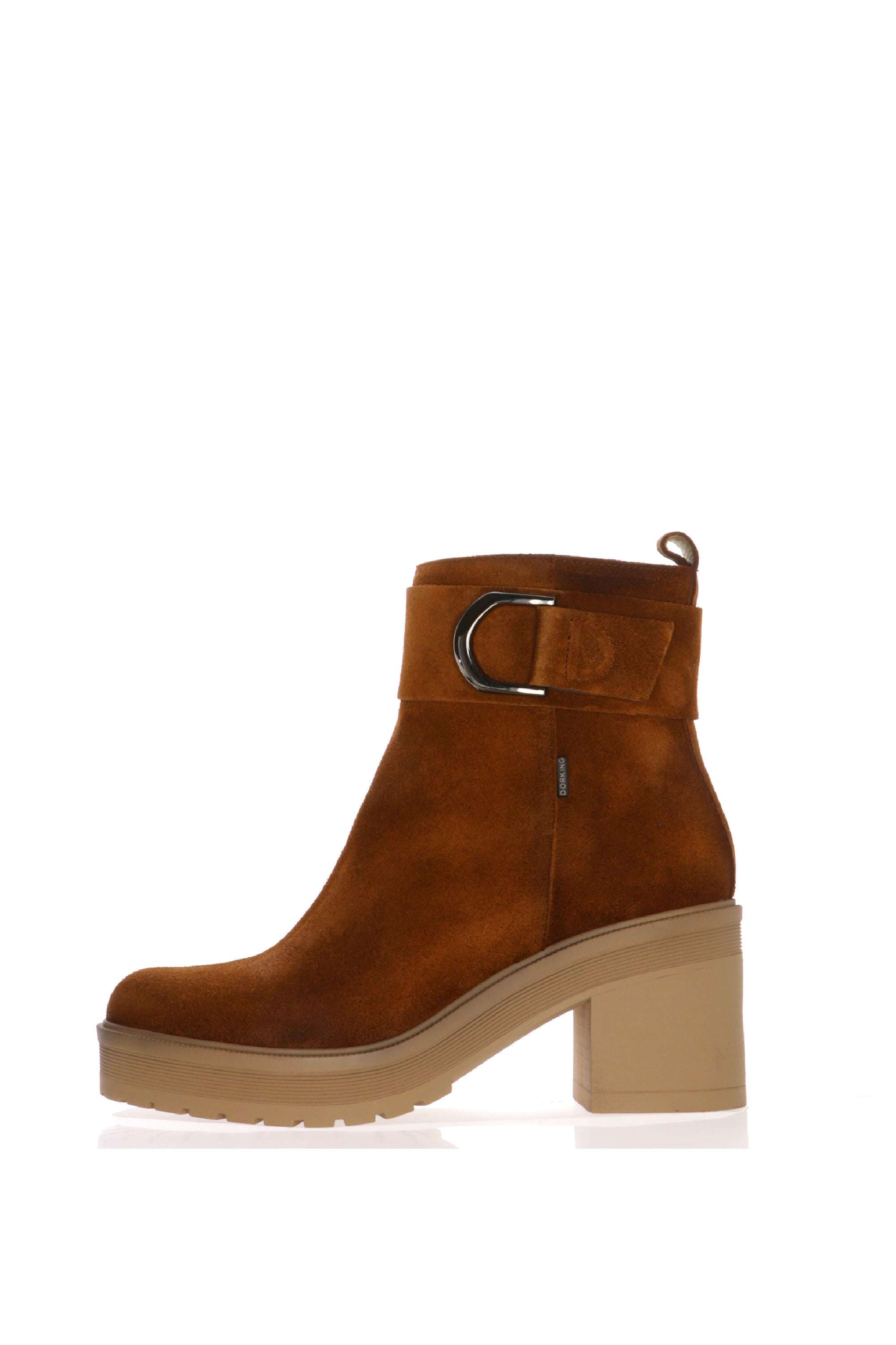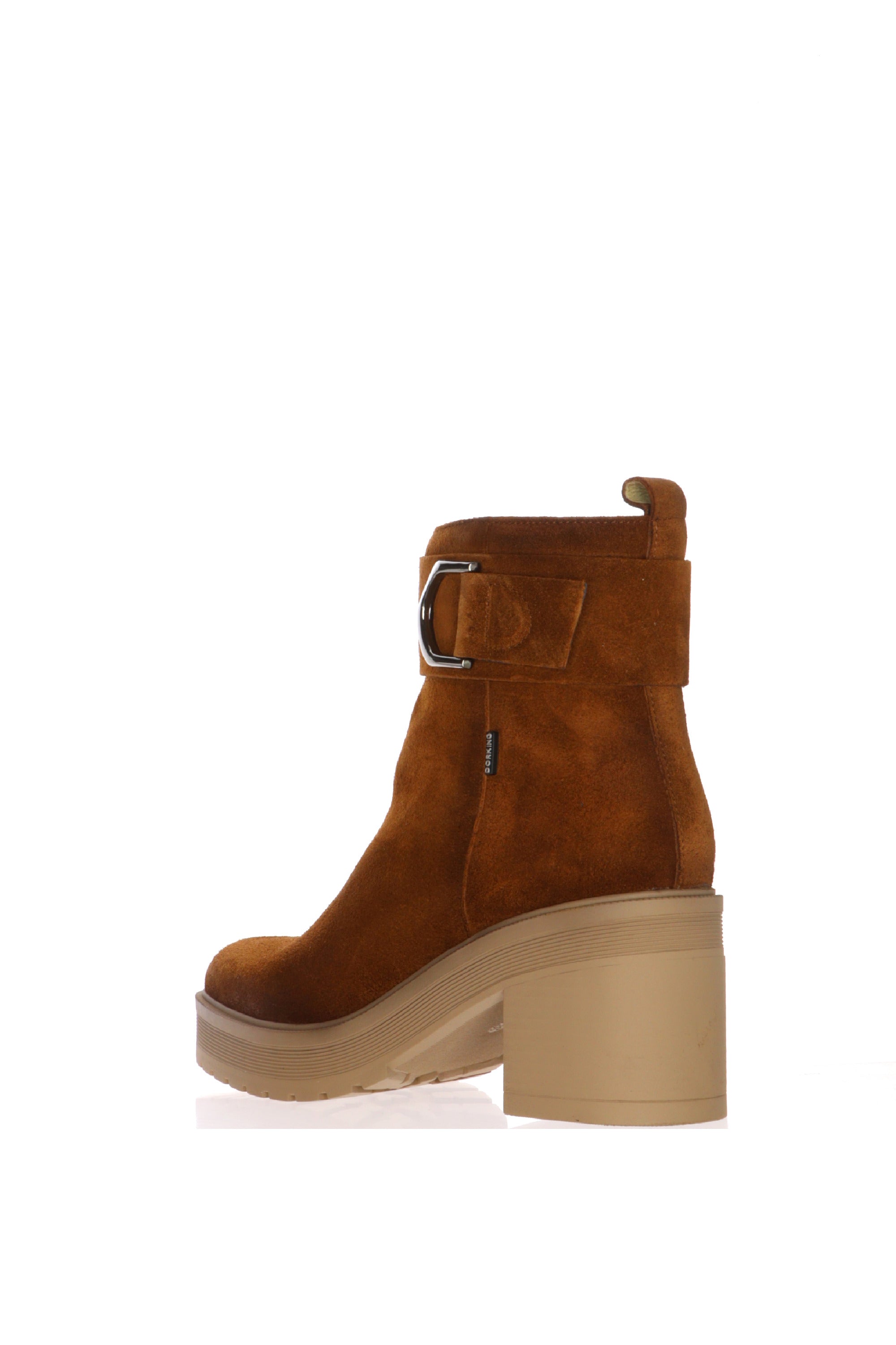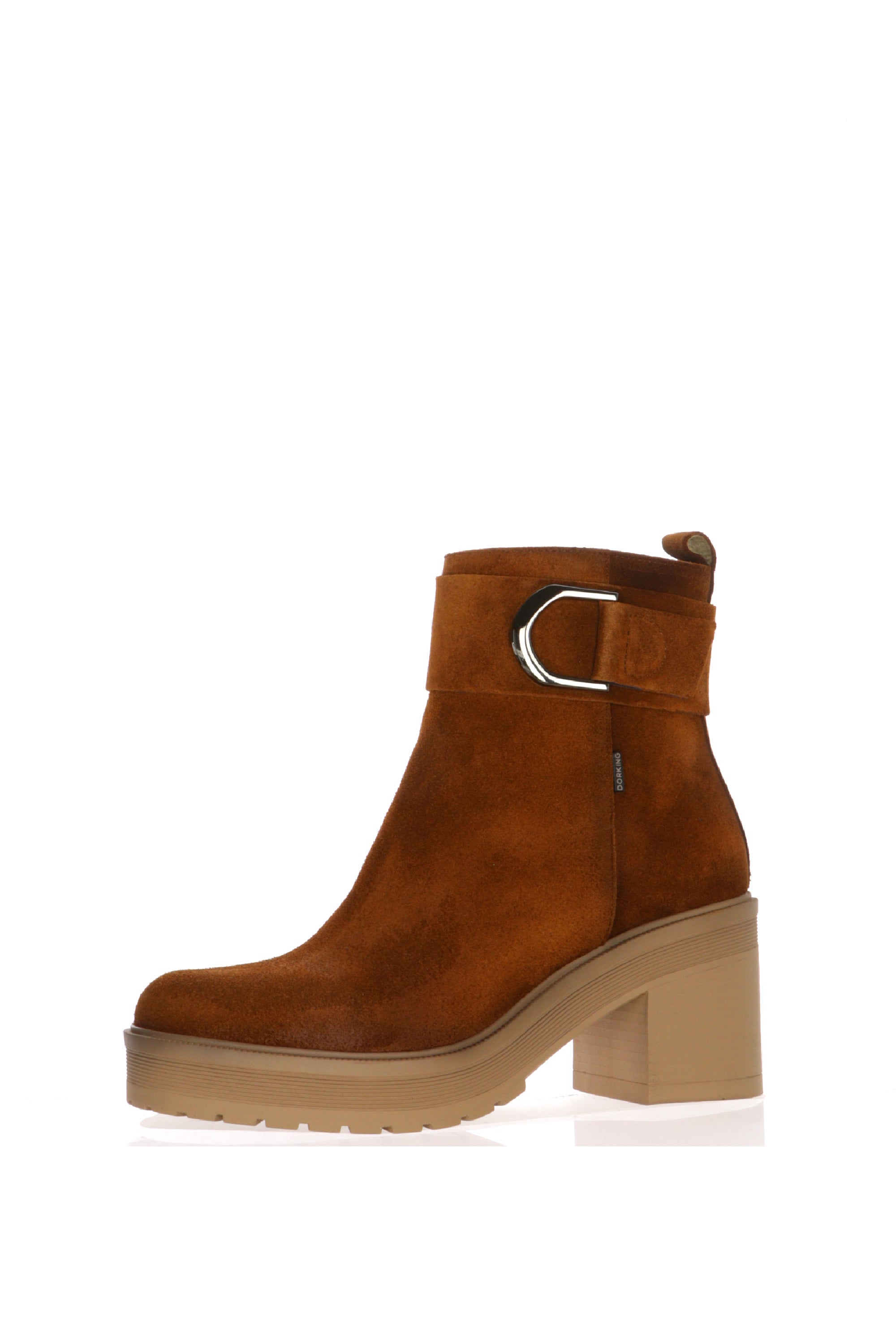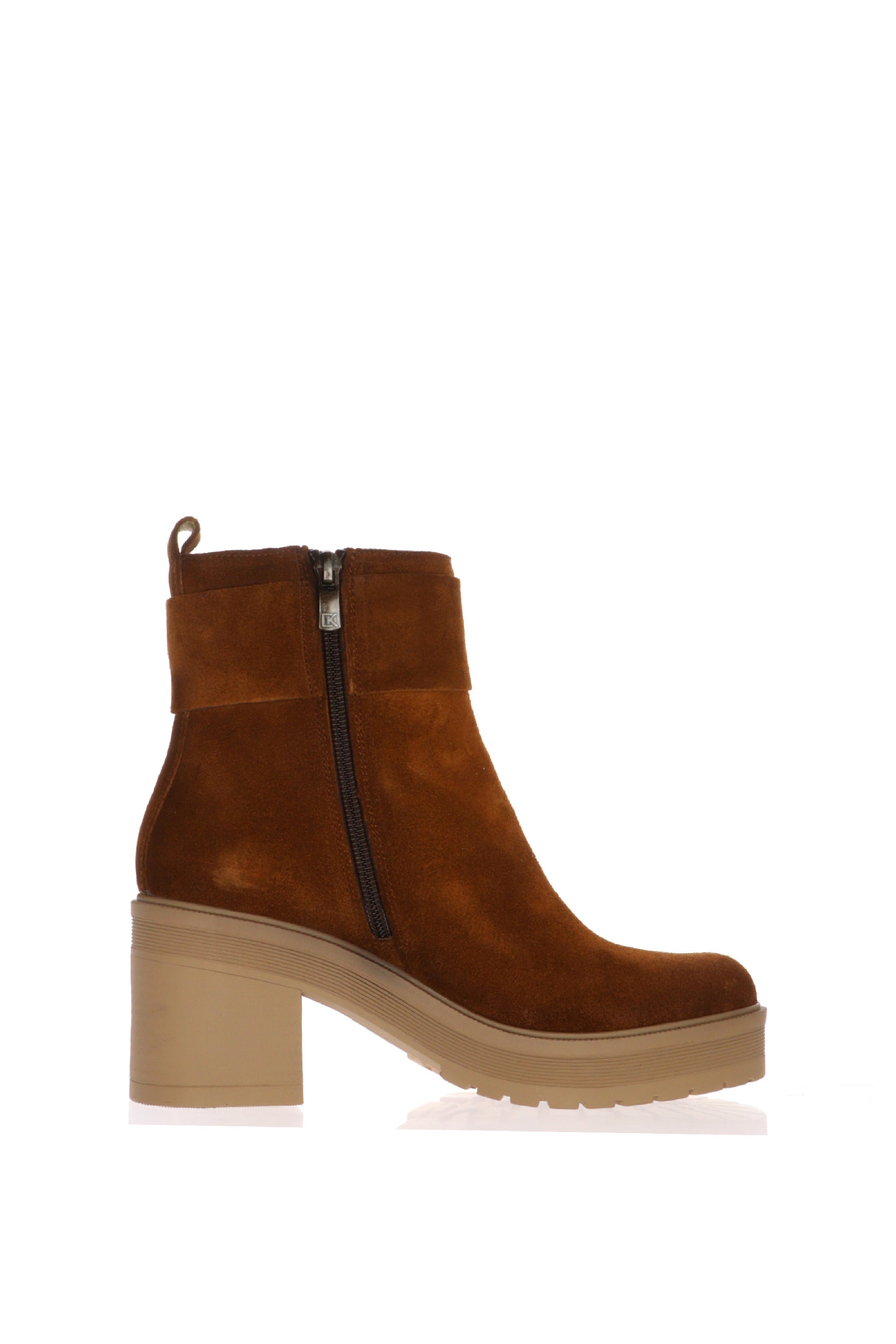 Stivaletto in camoscio cuoio con tacco largo Fluchos