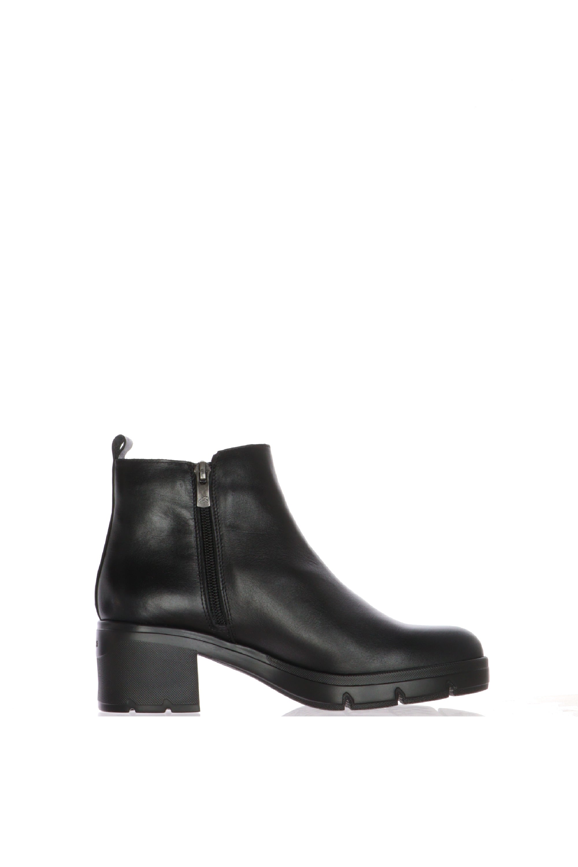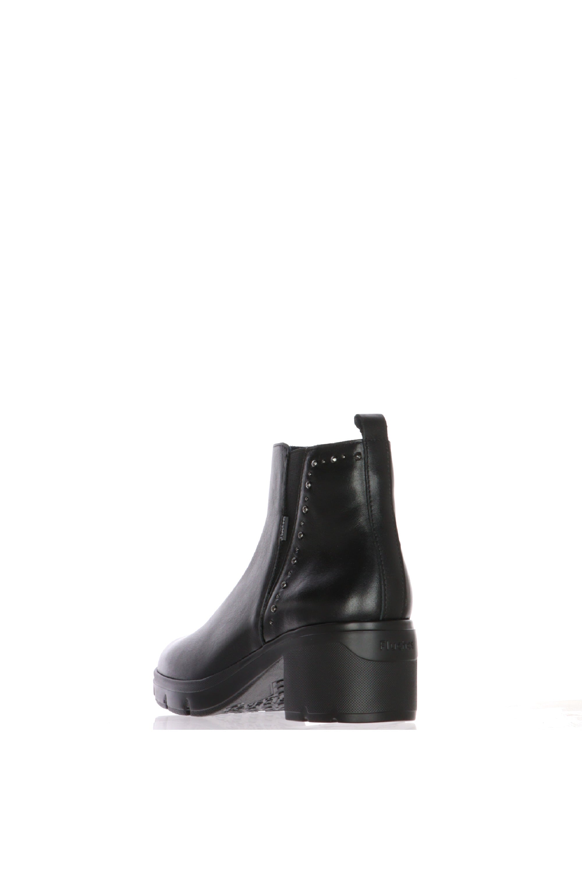 Stivaletto in pelle nera con borchioette tacco basso Fluchos