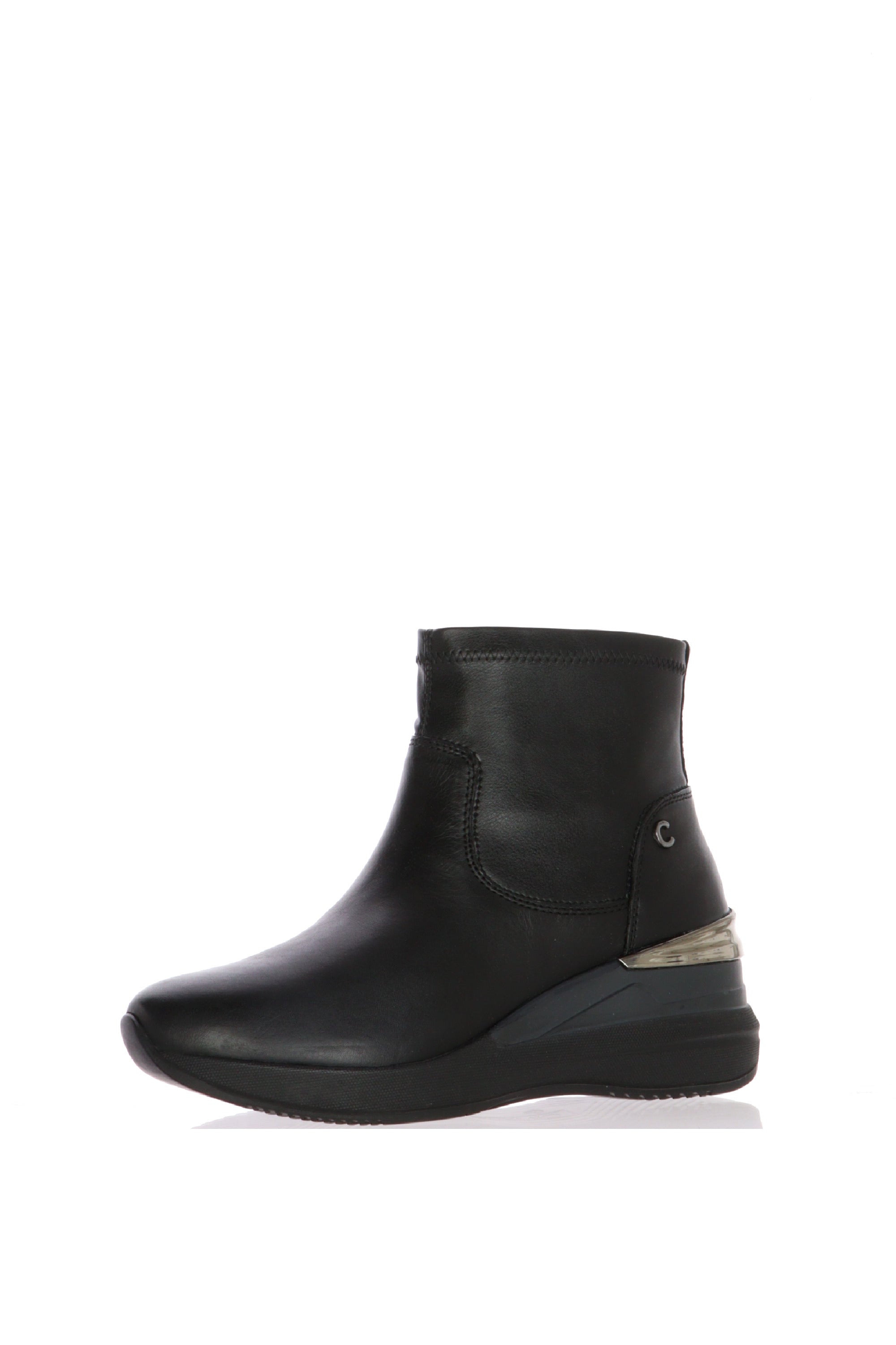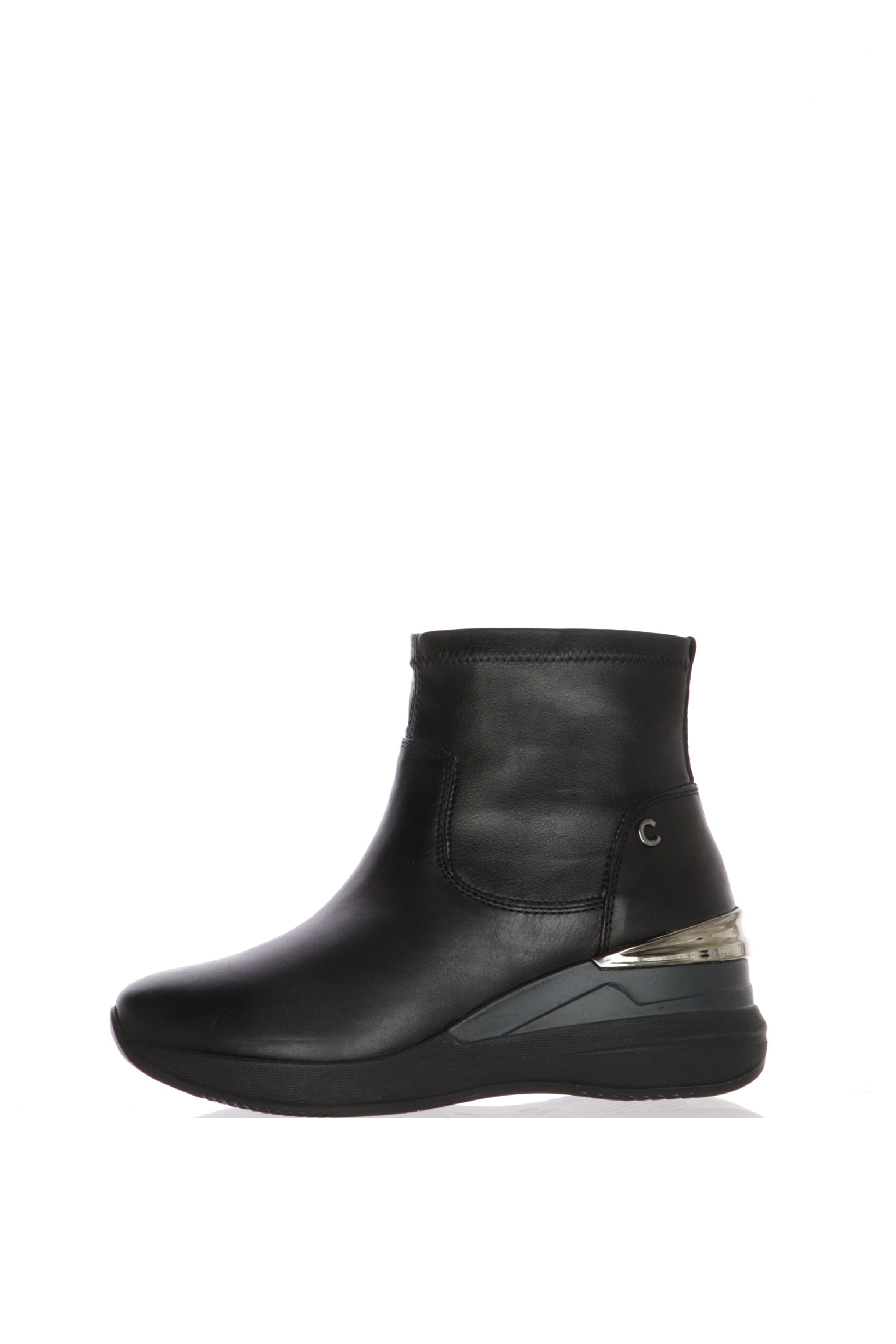 Stivaletto Donna Cinzia Soft in Pelle Nera con Zeppa Comoda e Dettaglio MetalloScopri il perfetto equilibrio tra stile contemporaneo e comfort assoluto con questo stivaletto Cinzia Soft da donna. Realizzato in morbida pelle nera, questo modello è la scelta ideale per chi cerca una calzatura versatile, calda e capace di slanciare la figura senza sacrificare la comodità.Il design è caratterizzato da una tomaia avvolgente che combina la pelle liscia sul piede con un tessuto elasticizzato sulla caviglia (effetto "calzino" o stretch), garantendo una calzata facile e aderente.Il punto di forza è la moderna zeppa ammortizzata in gomma, che assicura stabilità e supporto tutto il giorno. Un elegante dettaglio metallico color canna di fucile/argento lucido sul tallone aggiunge un tocco di luce e raffinatezza. Scegli la qualità e la vestibilità eccezionale degli stivaletti Cinzia Soft  per un look impeccabile in ogni occasione.