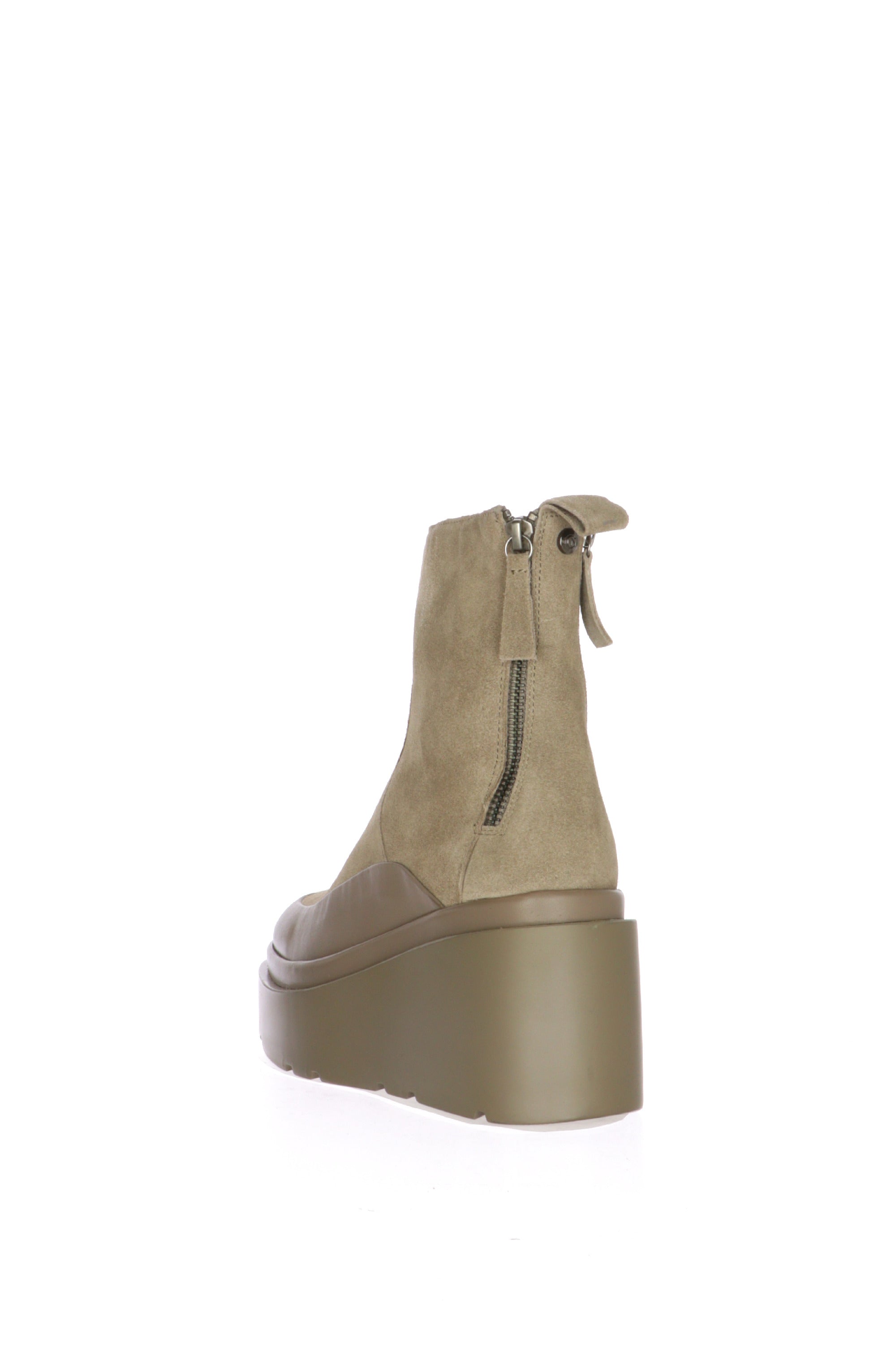 Stivale in vero camoscio con dettagli in pelle e zeppa alta. Tendenza e stile ma anche comfort in uno stivaletto ideale per tutti i giorni ed il tempo libero. Disponibile nei colori nero e fango colore delicato da abbinare con tanti outfit differenti. CafèNoir