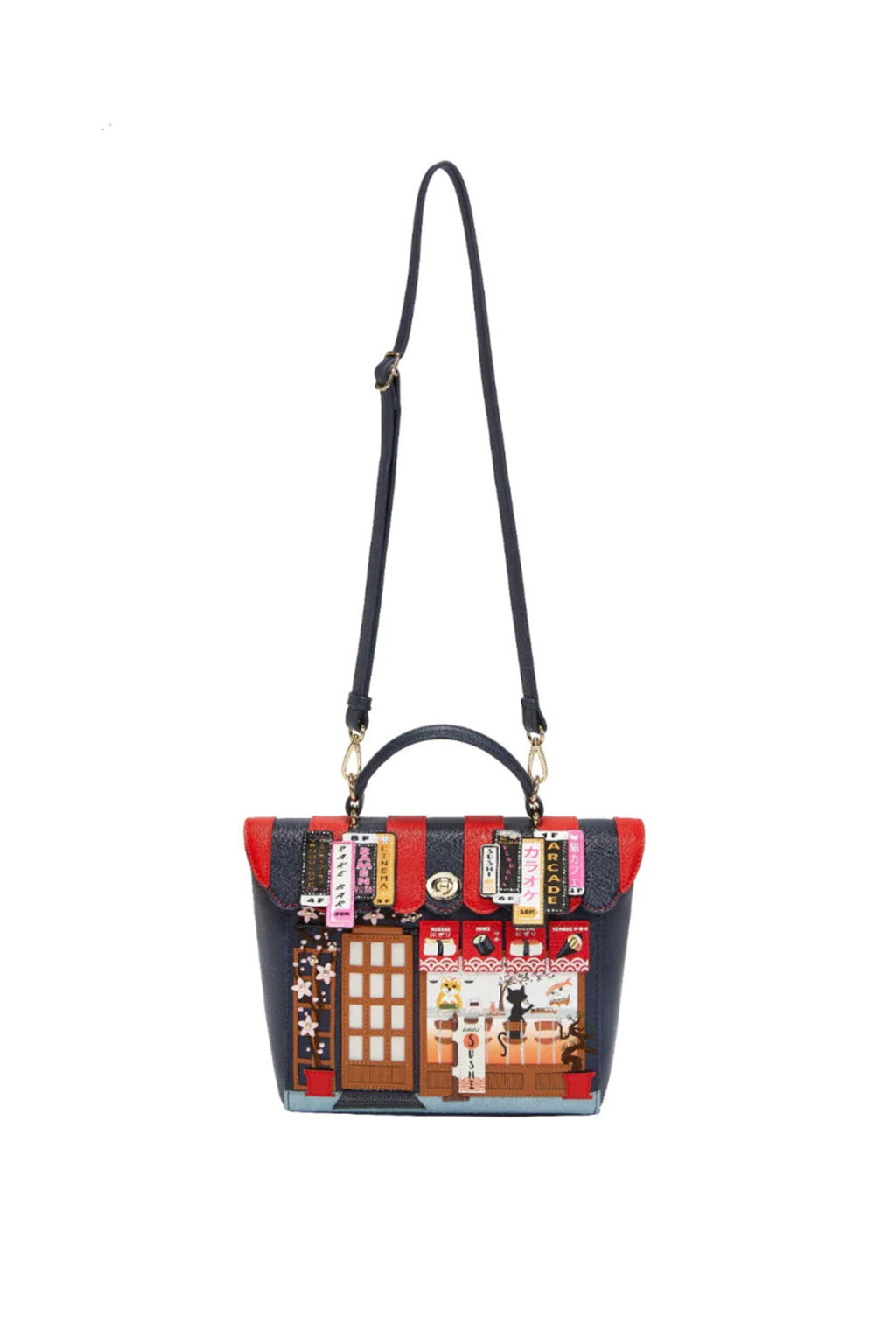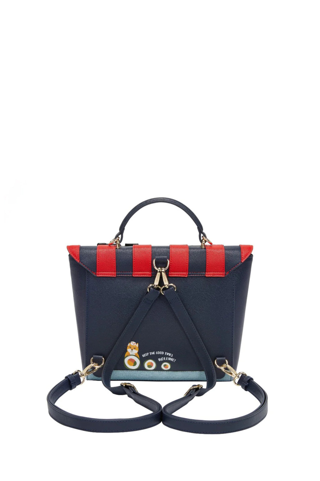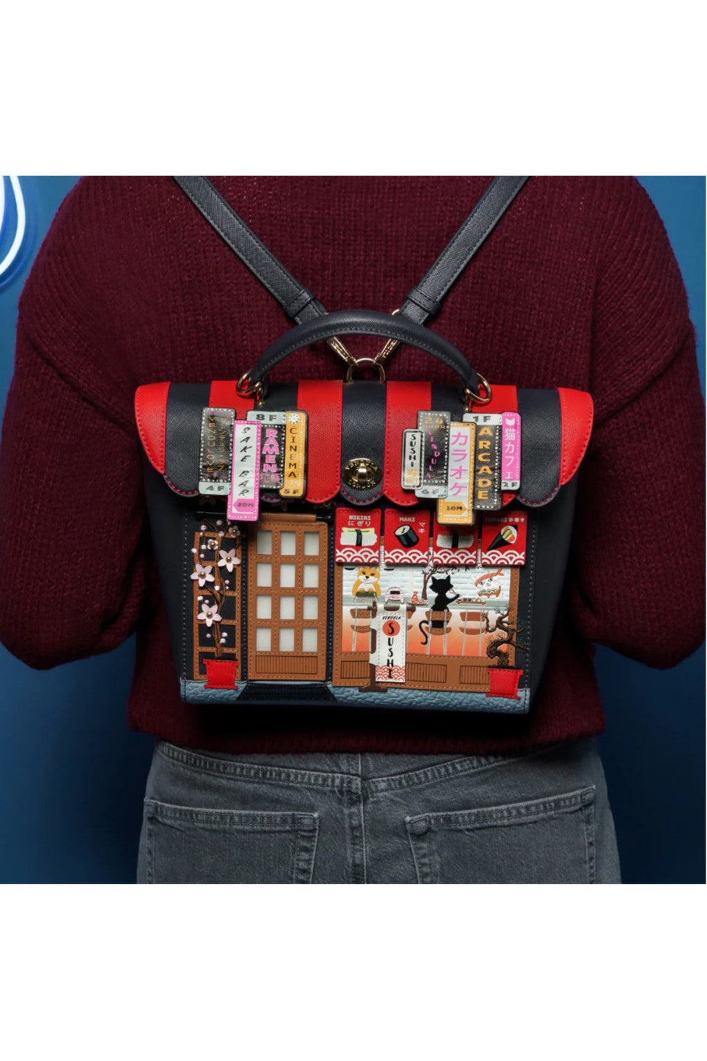 Uno stile incredibilmente fantastico è in arrivo! Lo Zaino ''Classic'' Vendula Sushi - Blue Edition è un capolavoro multiuso. Utilizzalo come zaino, borsa a mano, a spalla o a tracolla, tutto grazie alle cinghie rimovibili e al manico superiore. Realizzato in pelle vegana, vanta un comparto spazioso e una grafica spettacolare ispirata a un ristorante di sushi, con i dettagli stampati e in 3D, i ciliegi in fiore e persino uno sfondo in miniatura di un centro commerciale. Non importa se devi sbrigare delle commissioni o esplorare il tuo paesaggio immaginario di Tokyo, questo è lo zaino che fa per te.