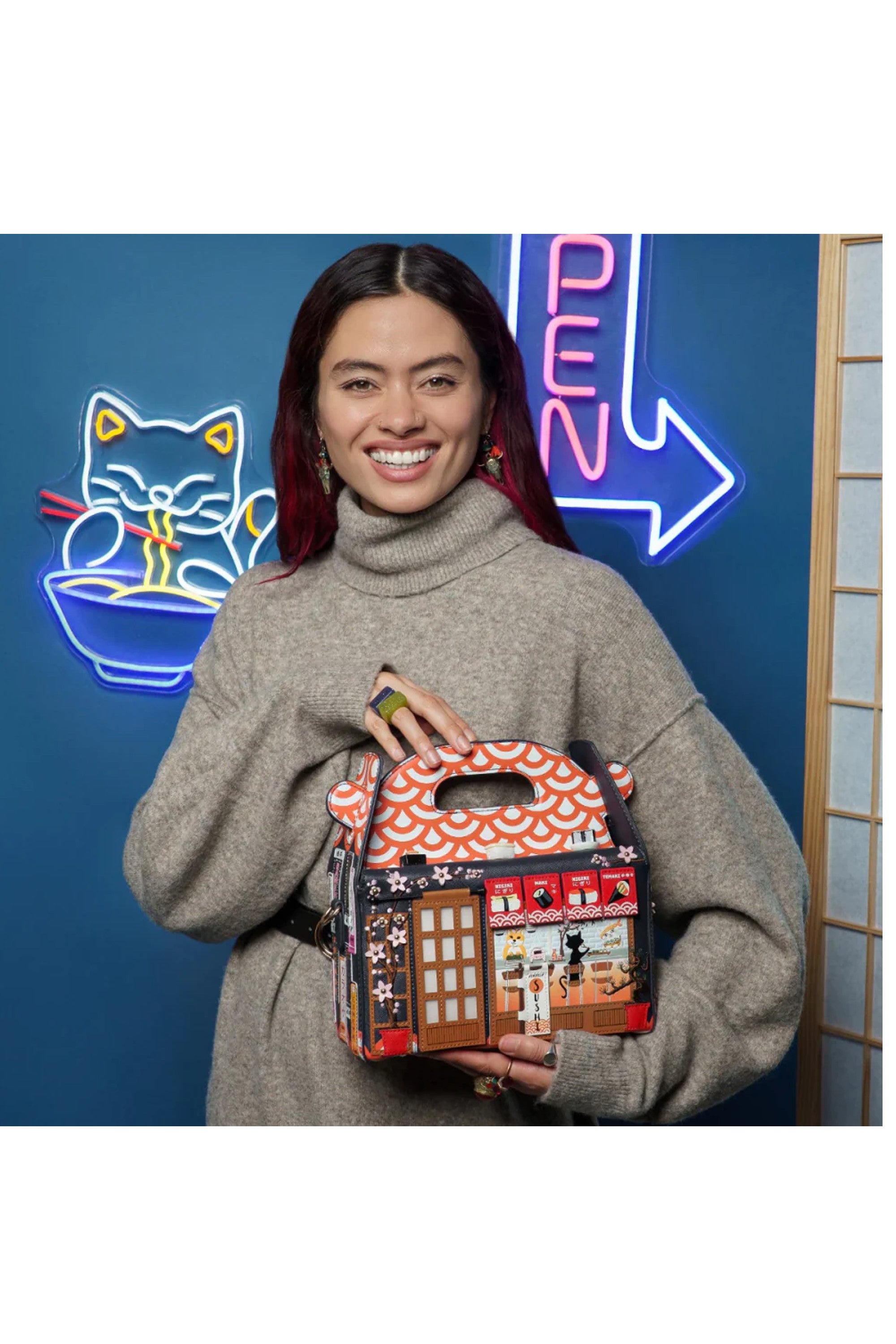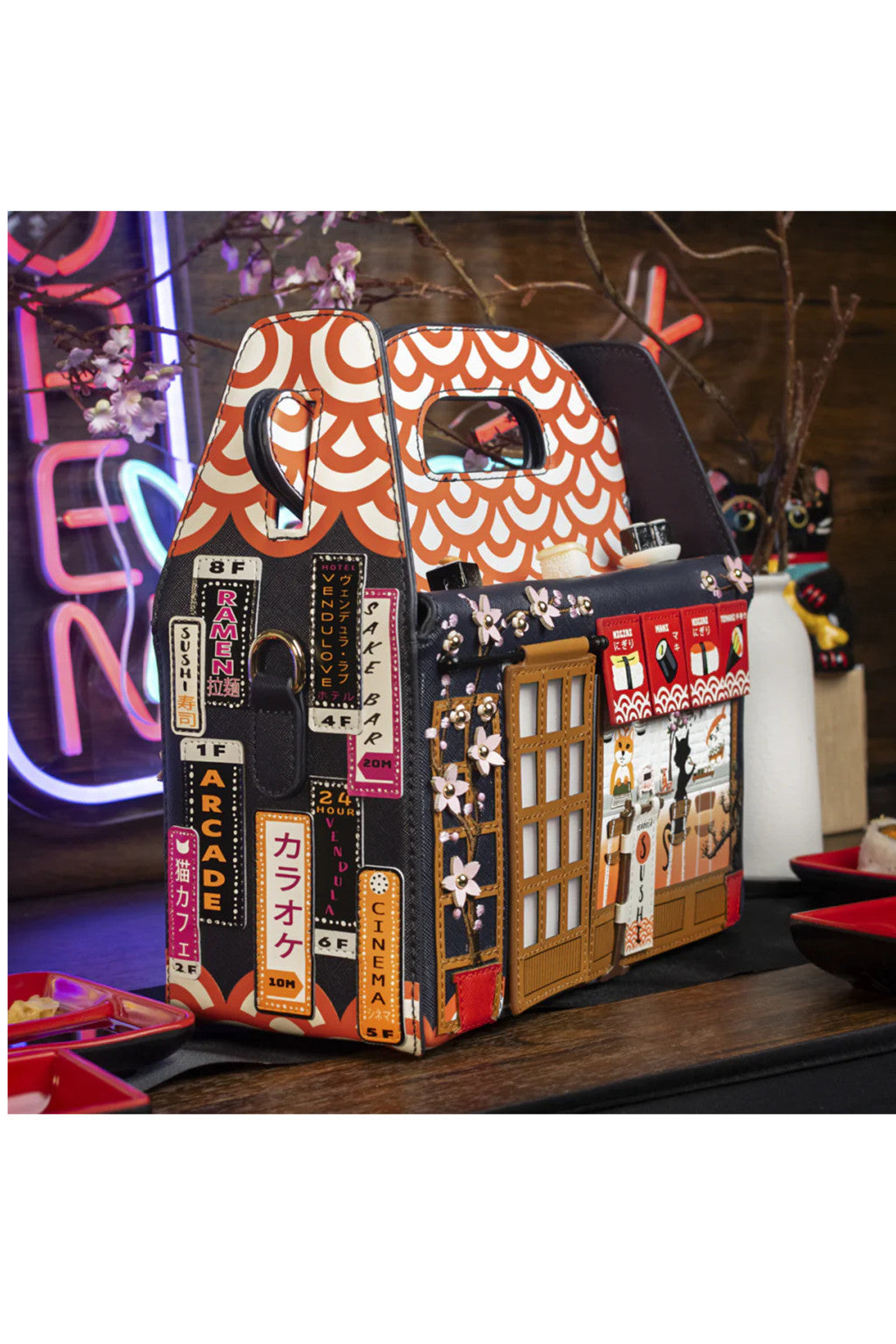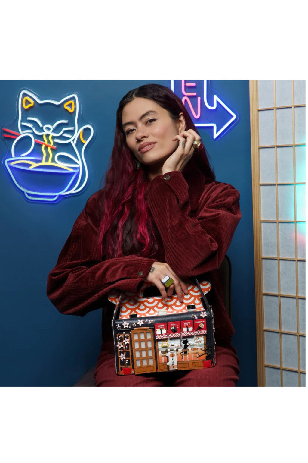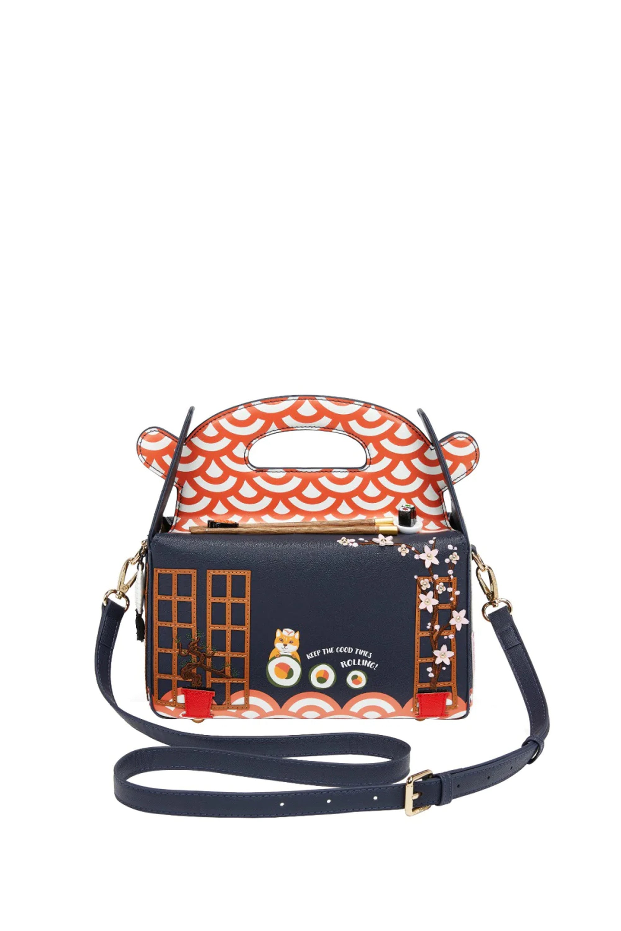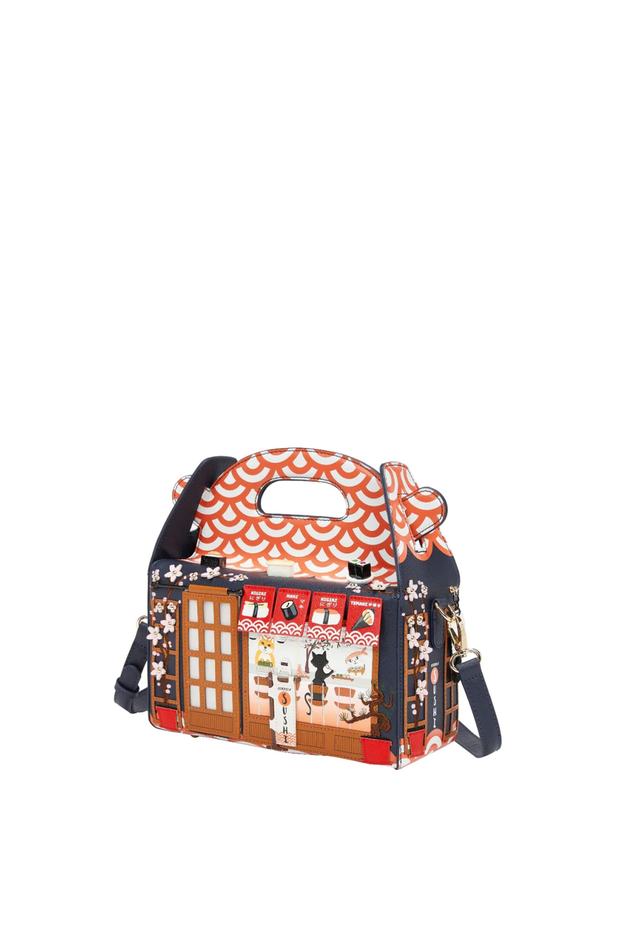 Assapora l’audacia con la Borsa ''Takeaway Box'' Vendula Sushi - Blue Edition! Ispirata alle vere scatole da asporto, questa borsa originale ha i manici tagliati al laser, le bacchette di legno e persino i ciondoli a tema sushi per un effetto “appena uscito dalla cucina”. Realizzata in pelle vegana con un interno spazioso e una cinghia regolabile, unisce giocosità e praticità. I dettagli stampati ispirati al ristorante di sushi e le nappine a forma di lanterna rossa la rendono un pezzo d’effetto da ogni punto di vista. Preparati a suscitare l’interesse della città… e forse anche del tuo ristorante di sushi preferito!